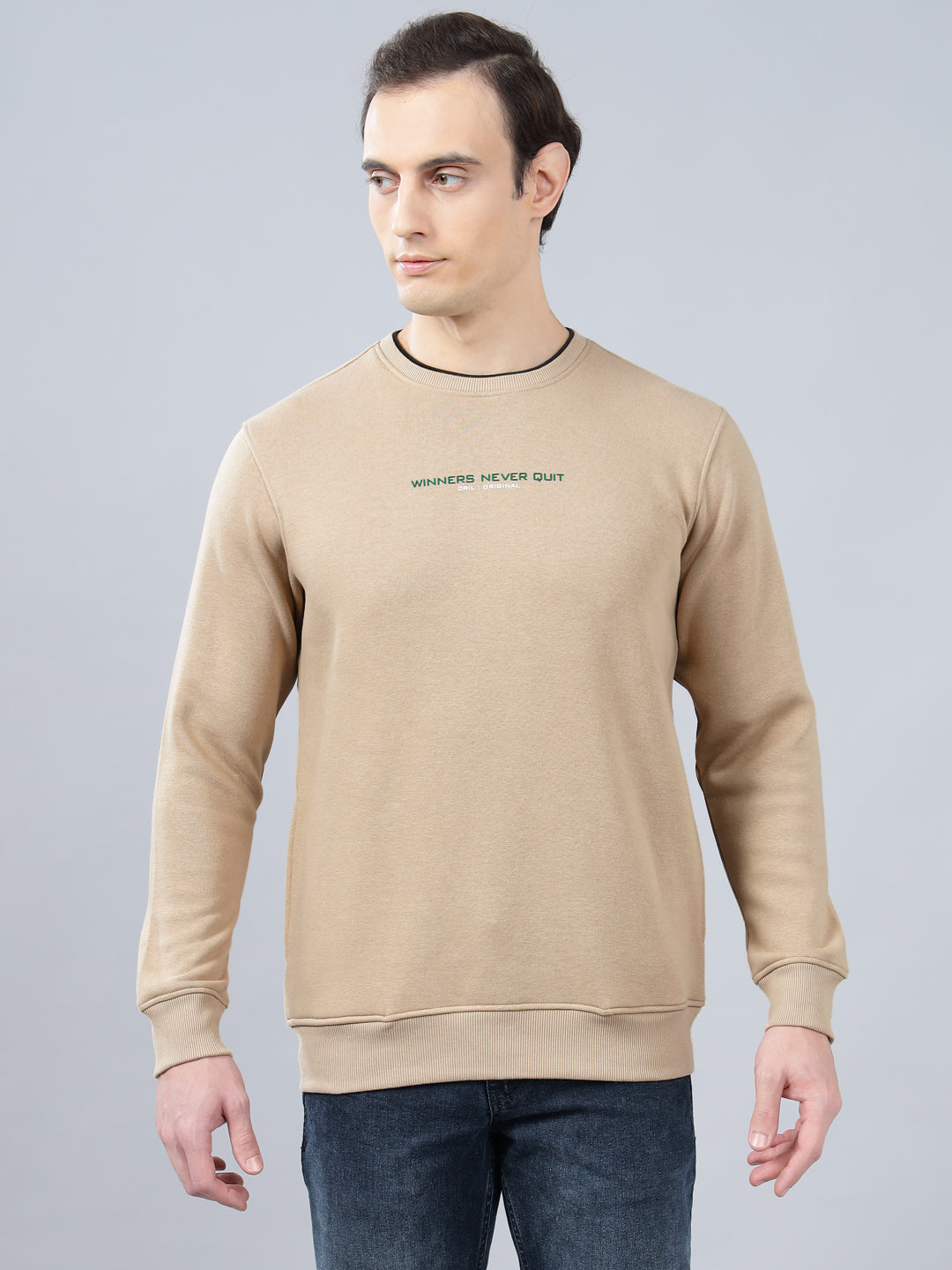 Men's Solid Beige Round Neck Sweatshirt