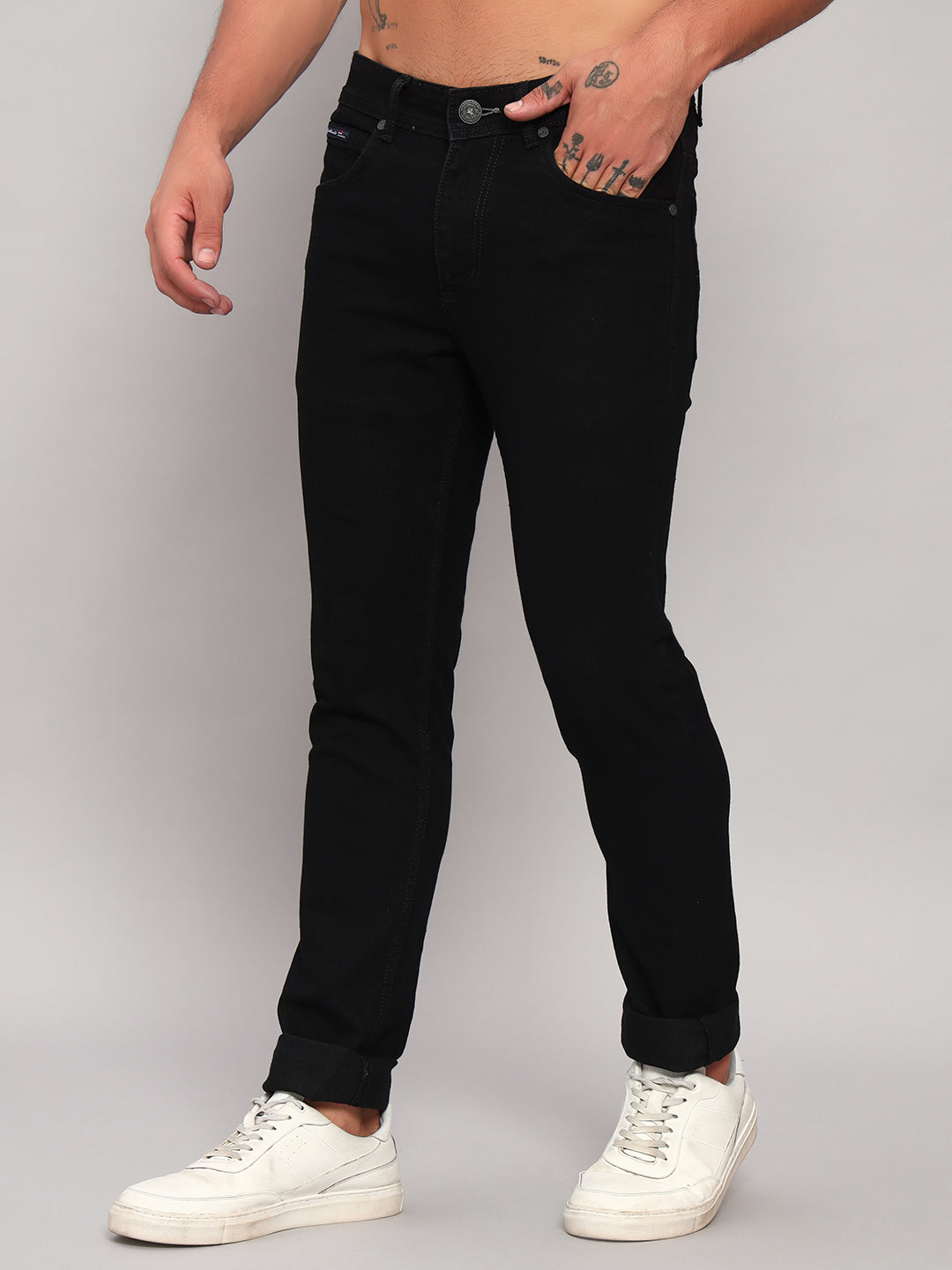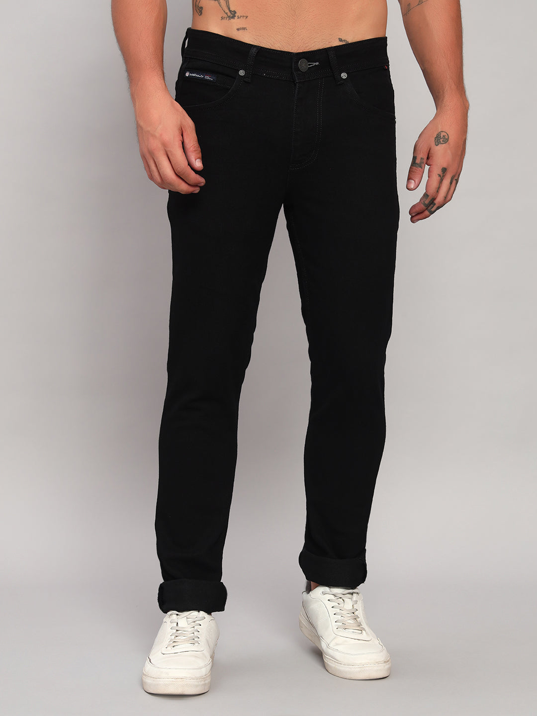 Denim Jeans for Men l Breathable & Soft with Color Fastness Ultra Narrow Fit Cotton Fabric Solid Pattern Button Closure