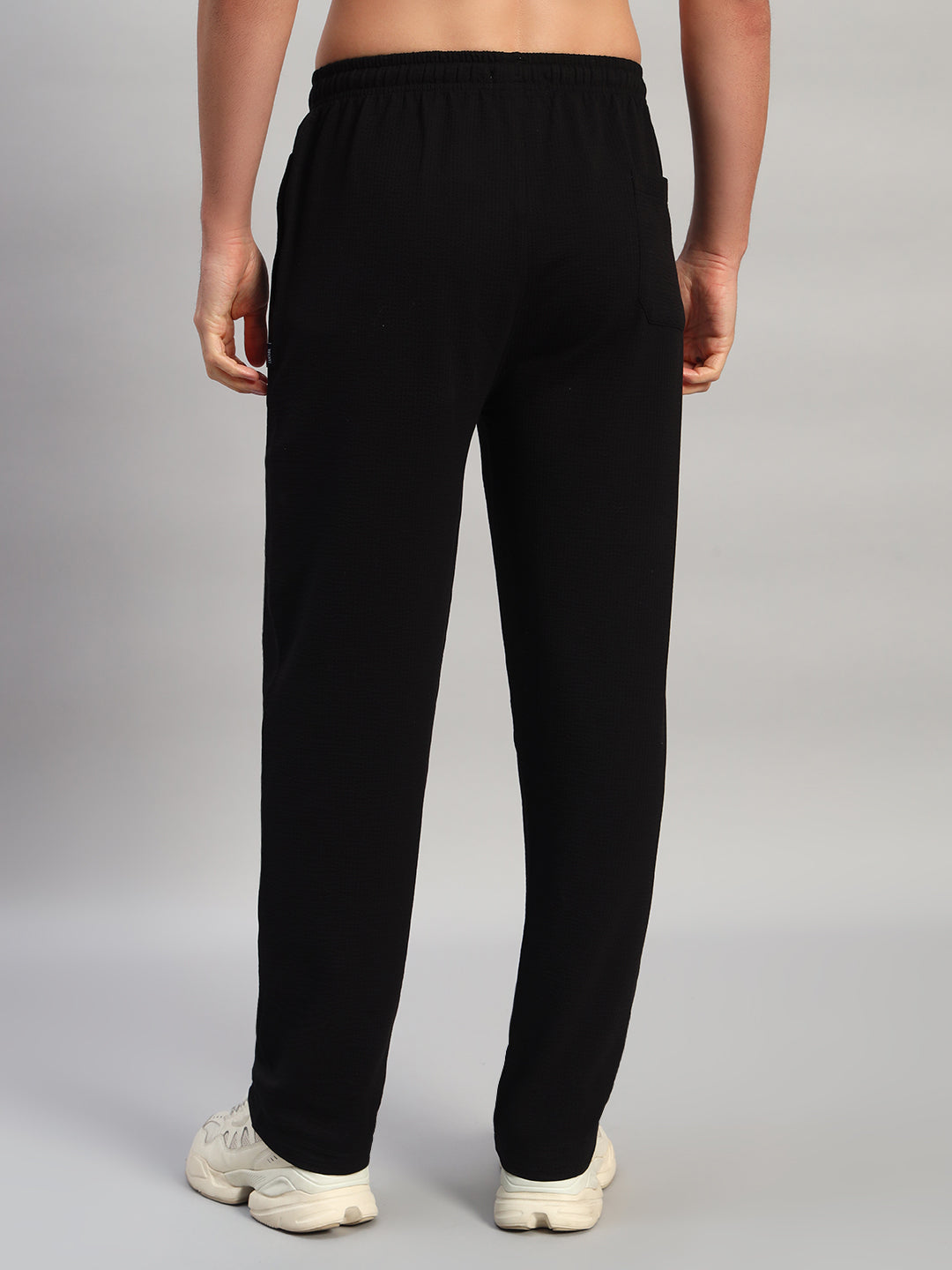 Men's Solid Black Flat Front Mid Rise Regular Fit Casual Track Pant