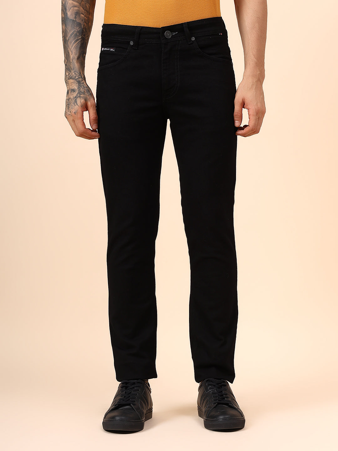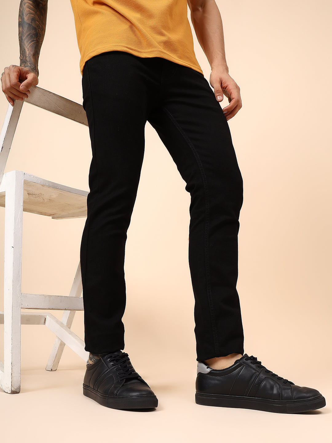 Denim Jeans for Men l Breathable & Soft with Color Fastness Ultra Narrow Fit Cotton Fabric Solid Pattern Button Closure