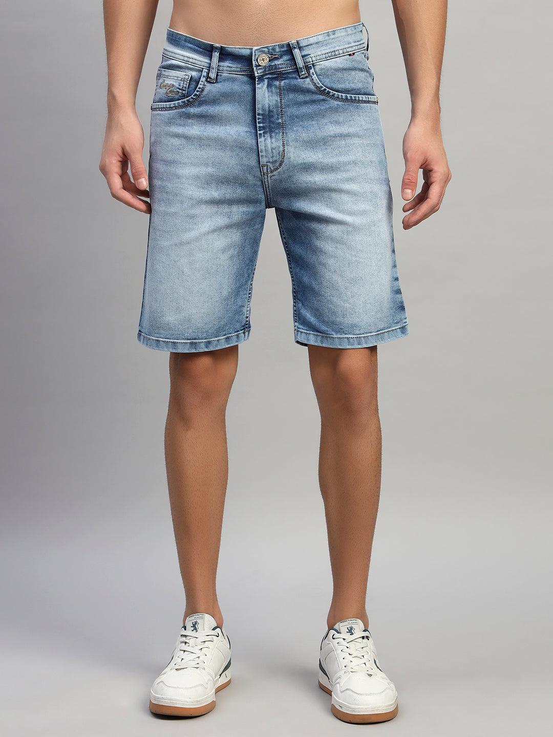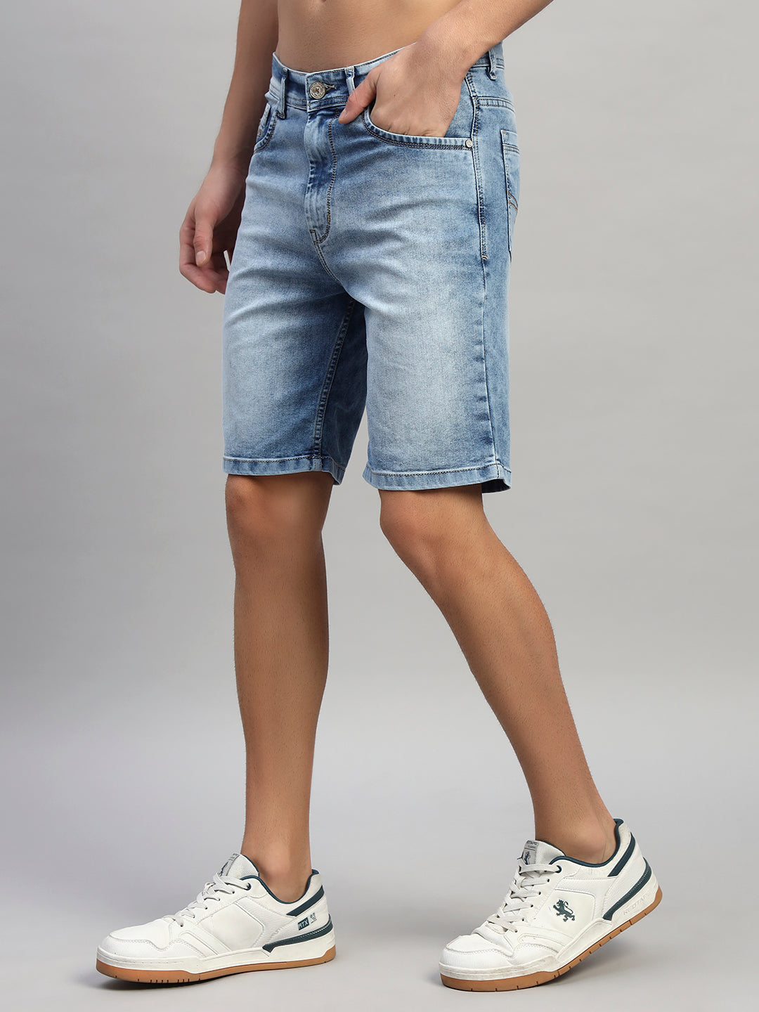 Men's Solid Denim Blue Regular Fit Casual Bermuda