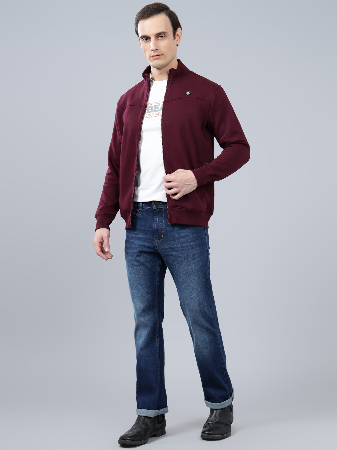 Men's Solid Maroon Mock Collar Sweatshirt