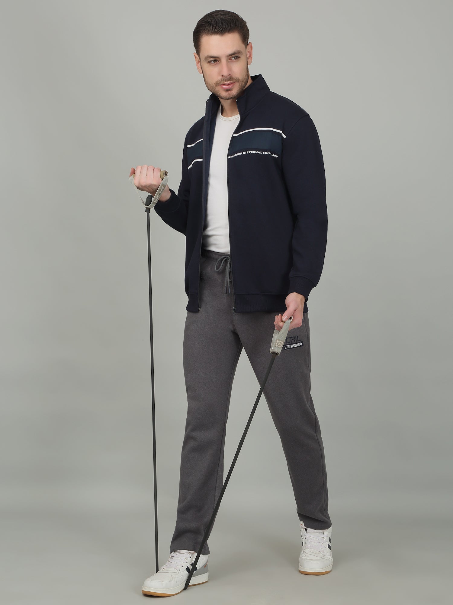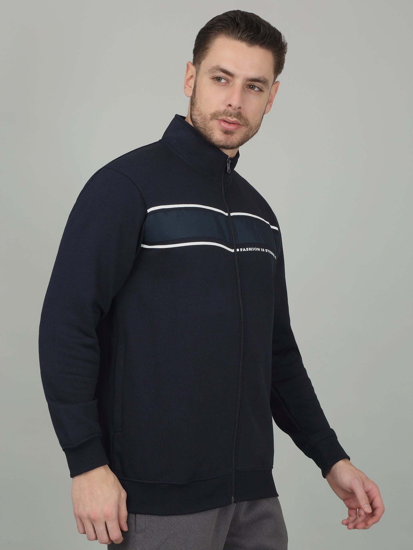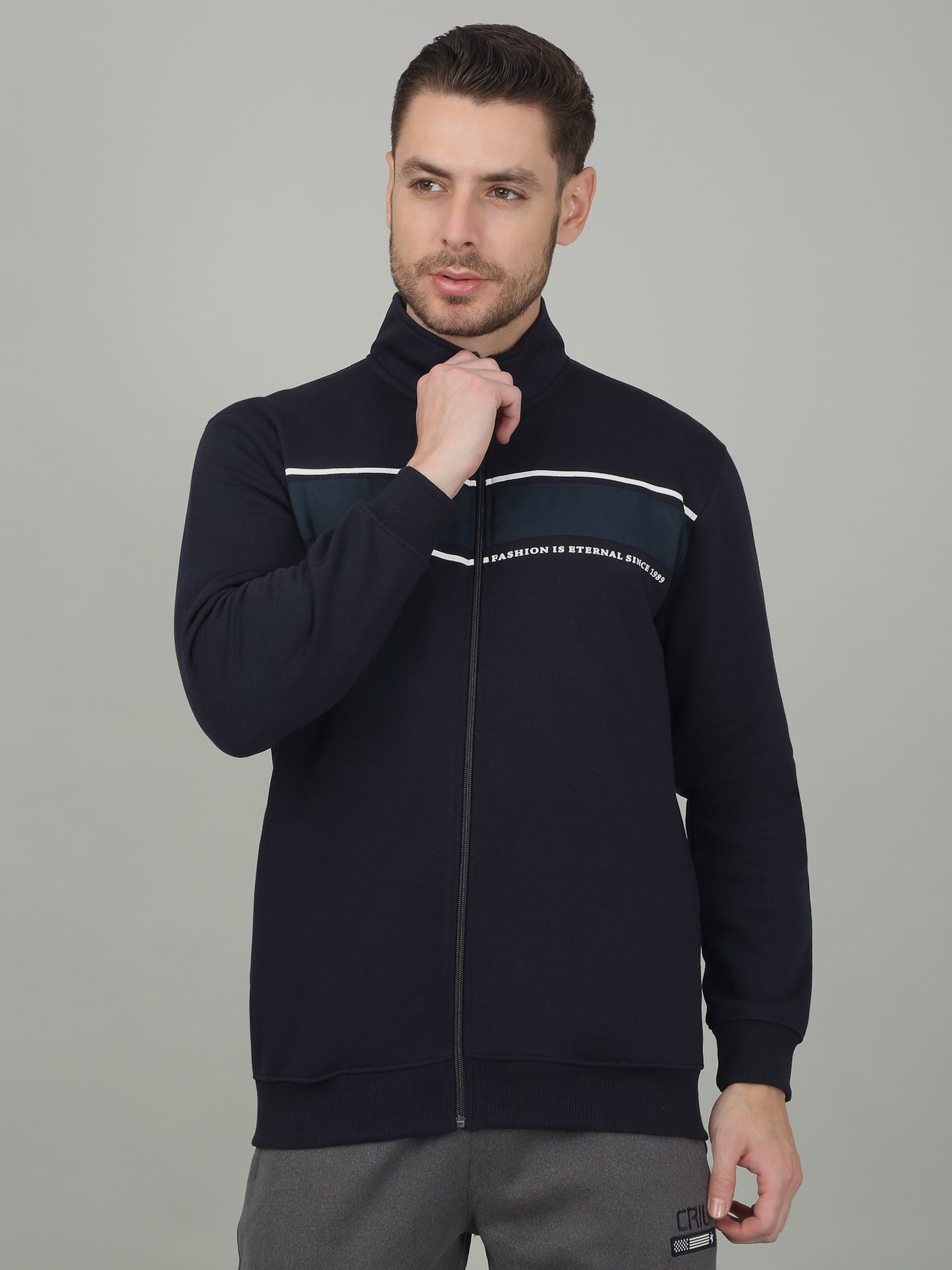 Men's Solid Navy Blue Mock Neck Sweatshirt