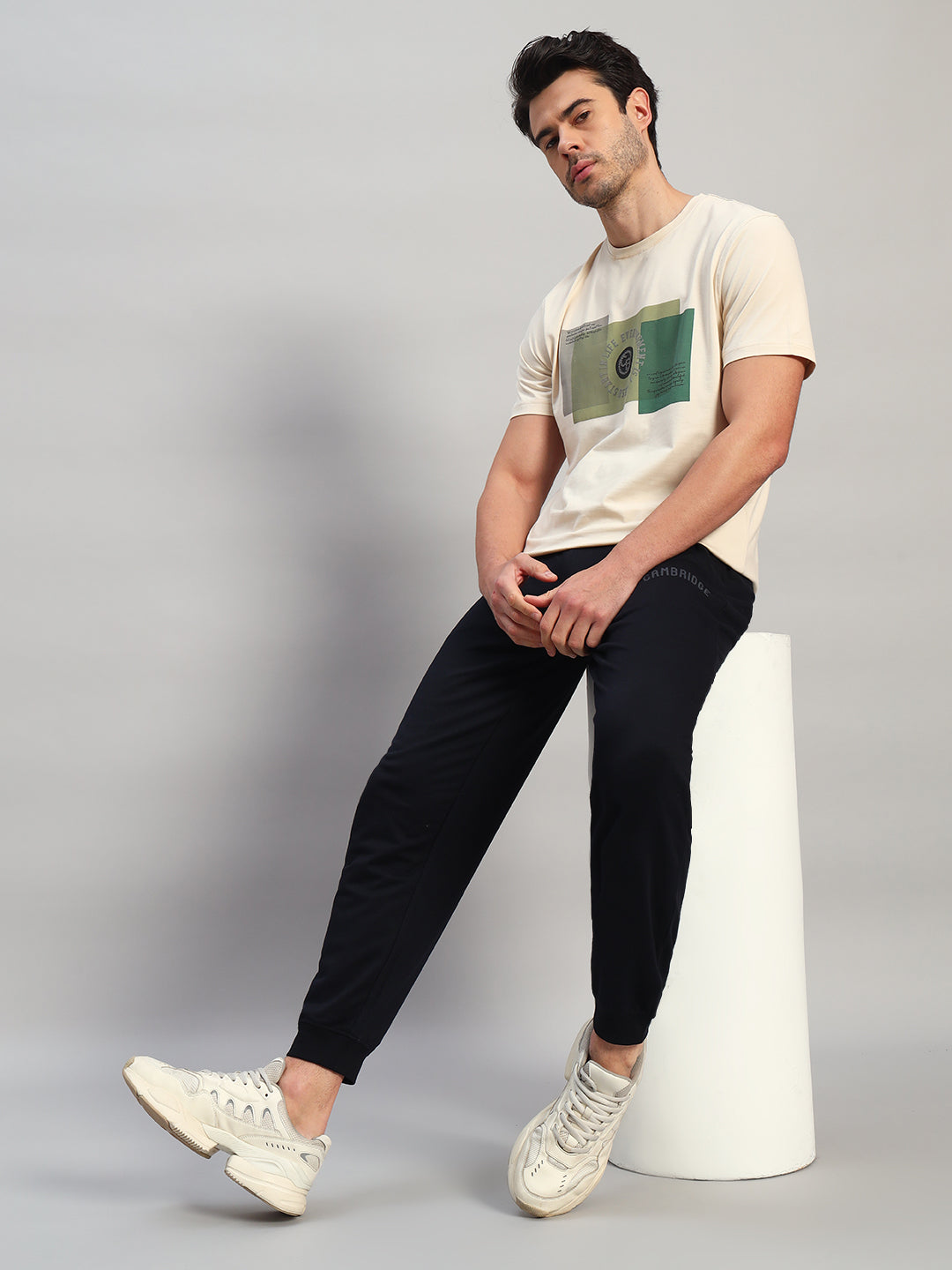 Men's Solid Navy Blue Regular Fit Casual Track Pant