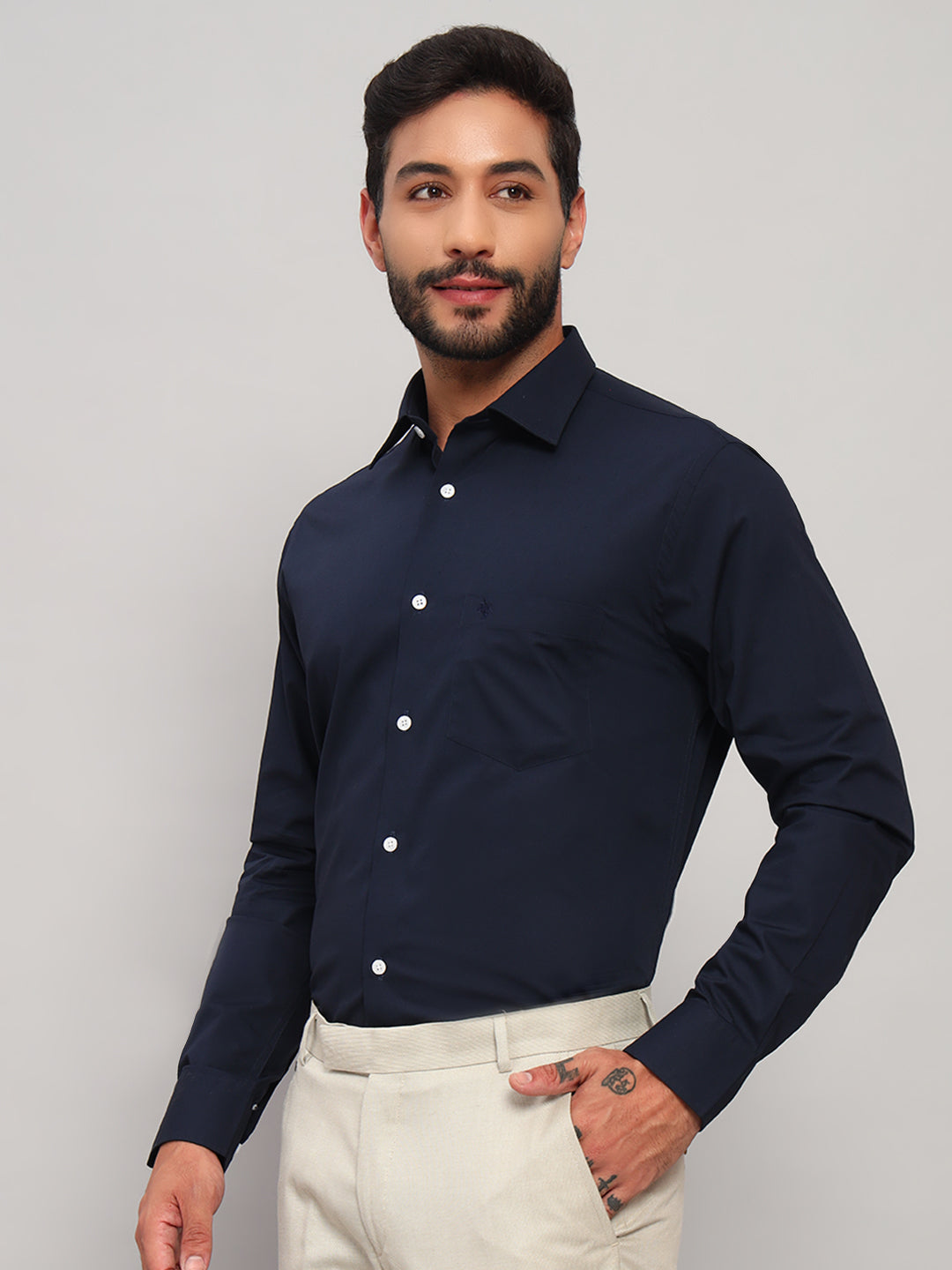 Formal Shirt for Men l Breathable & Soft with Color Fastness Regular Fit Spread Collar Neck Cotton Blend Fabric Solid Pattern