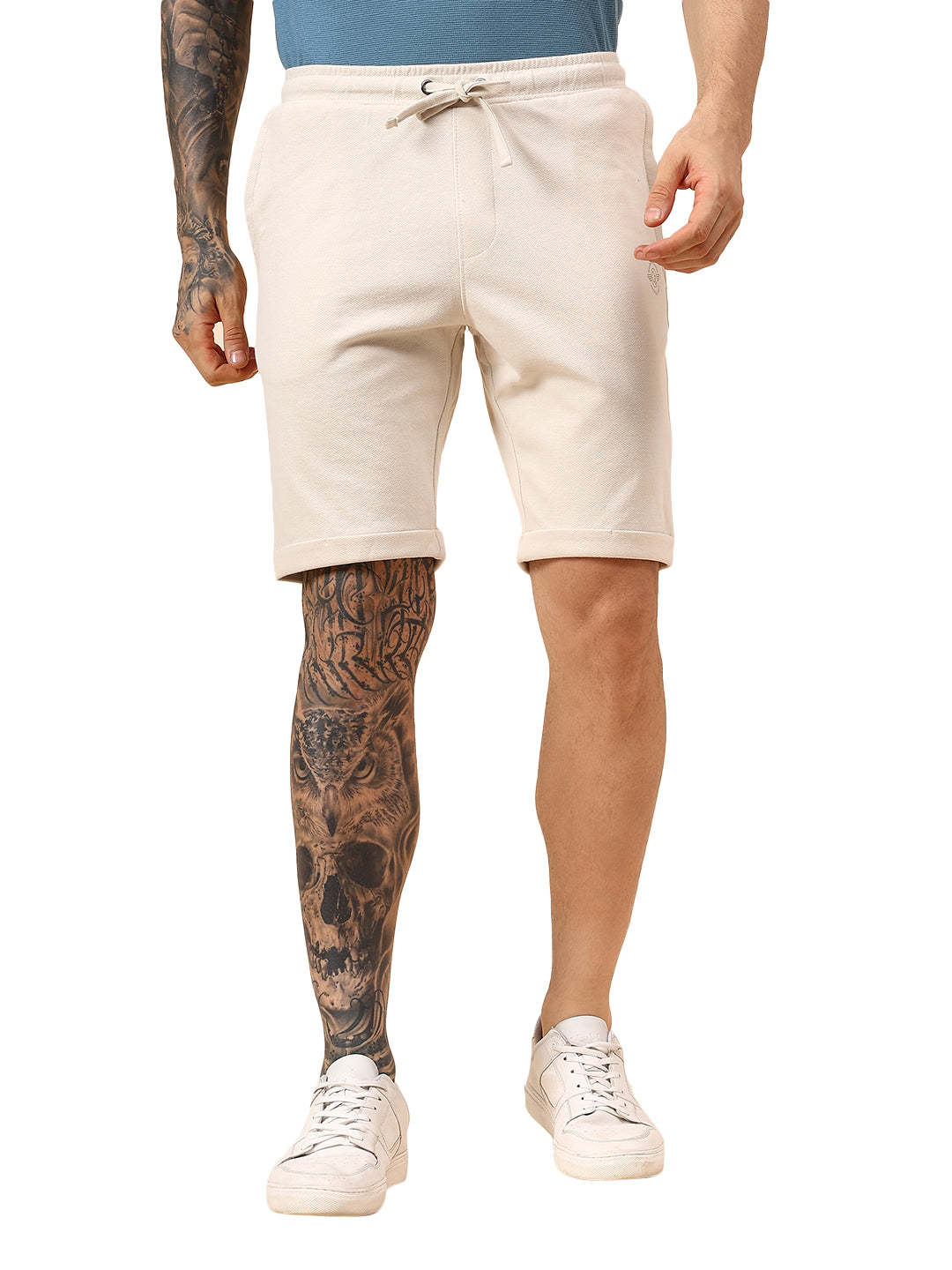 Men's Solid Off White Regular Fit Casual Bermuda