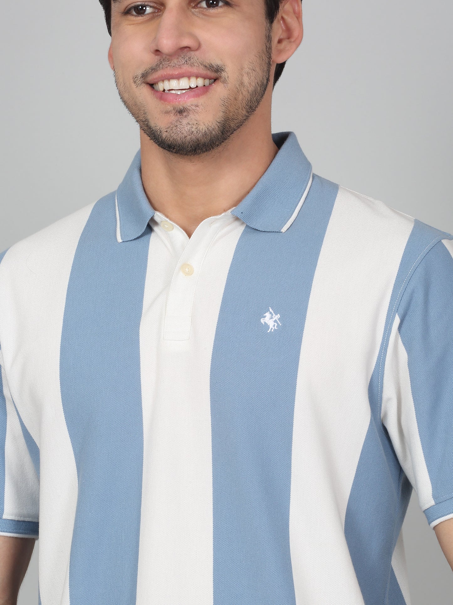 T-Shirt for Men | Breathable & Soft with Color Fastness Regular Fit Polo Neck Poly Cotton Fabric Striped Pattern