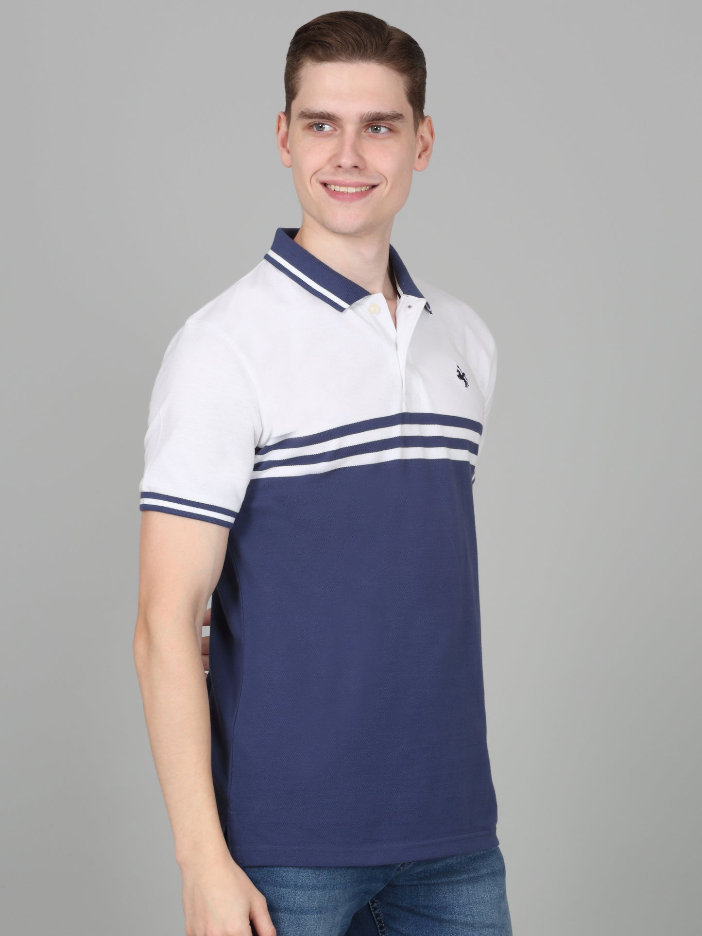 T-Shirt for Men | Breathable & Soft with Color Fastness Regular Fit Polo Neck Poly Cotton Fabric Striped Pattern
