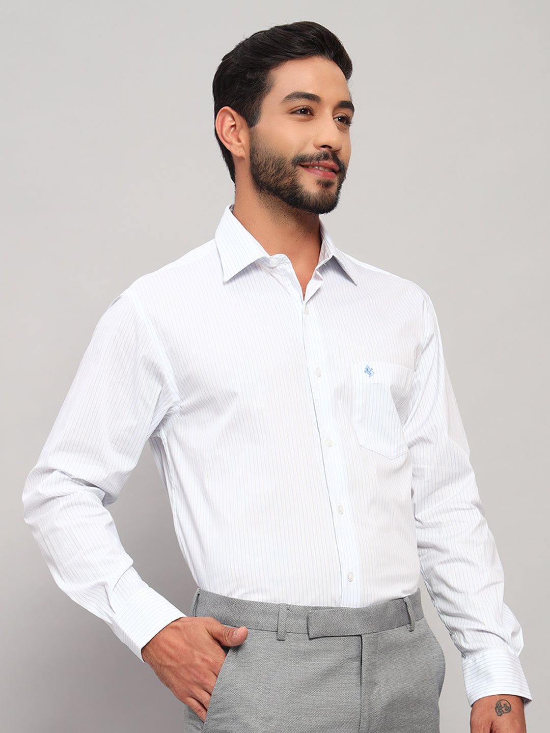 Formal Shirt for Men l Breathable & Soft with Color Fastness Regular Fit Spread Collar Neck Cotton Blend Fabric Striped Pattern