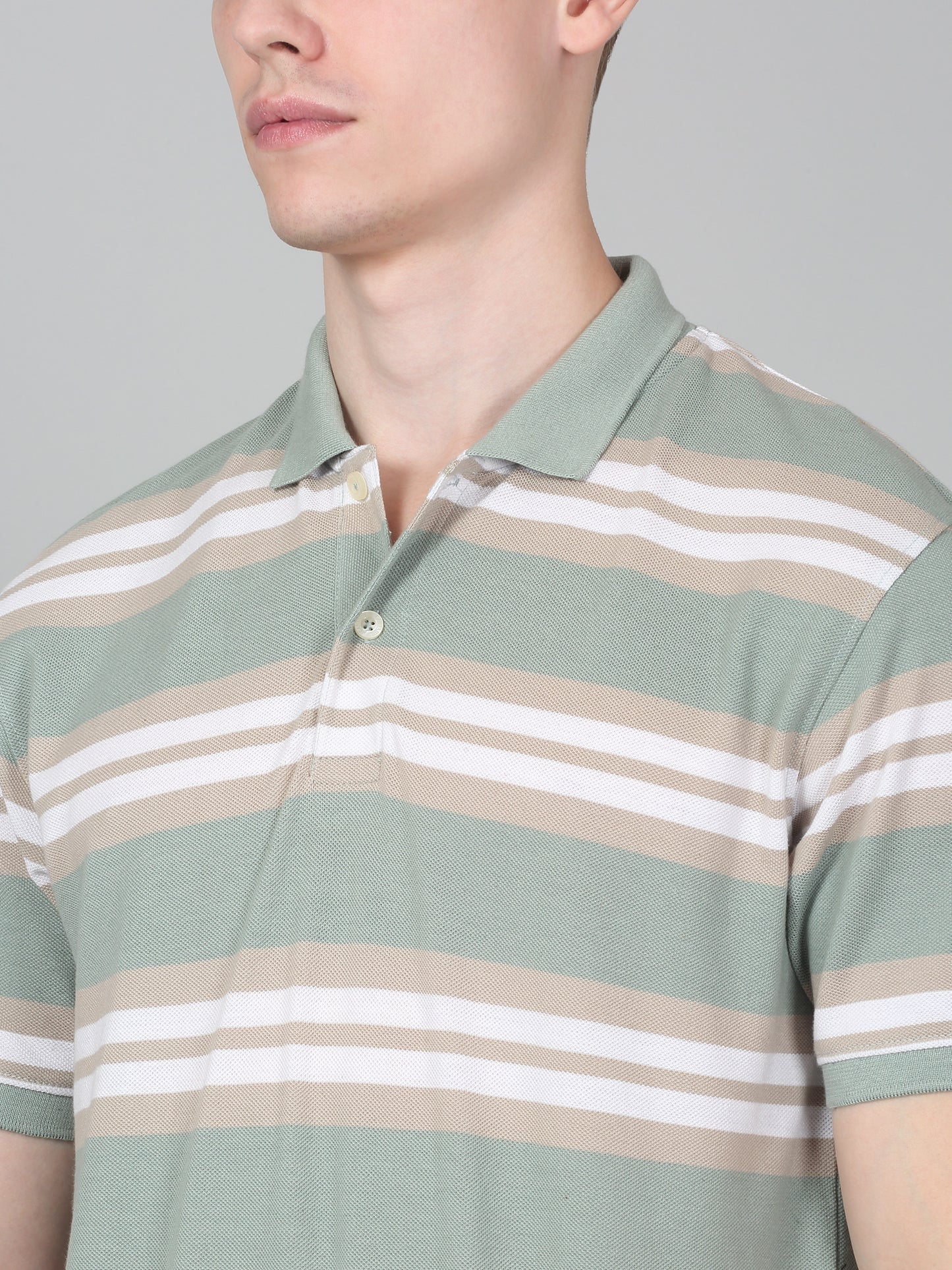 T-Shirt for Men | Breathable & Soft with Color Fastness Regular Fit Polo Neck Poly Cotton Fabric Striped Pattern