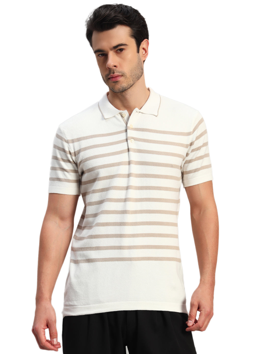 T-Shirt for Men | Breathable & Soft with Color Fastness Regular Fit Polo Neck Cotton Blend Fabric Striped Pattern