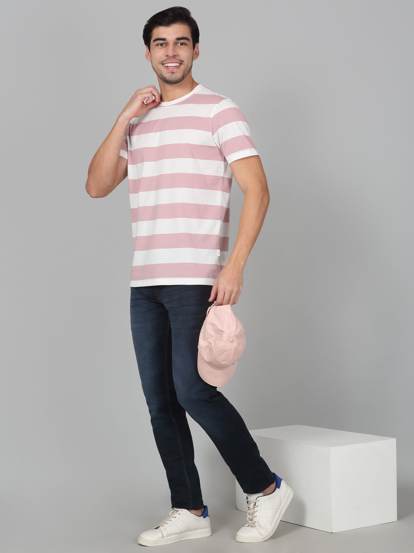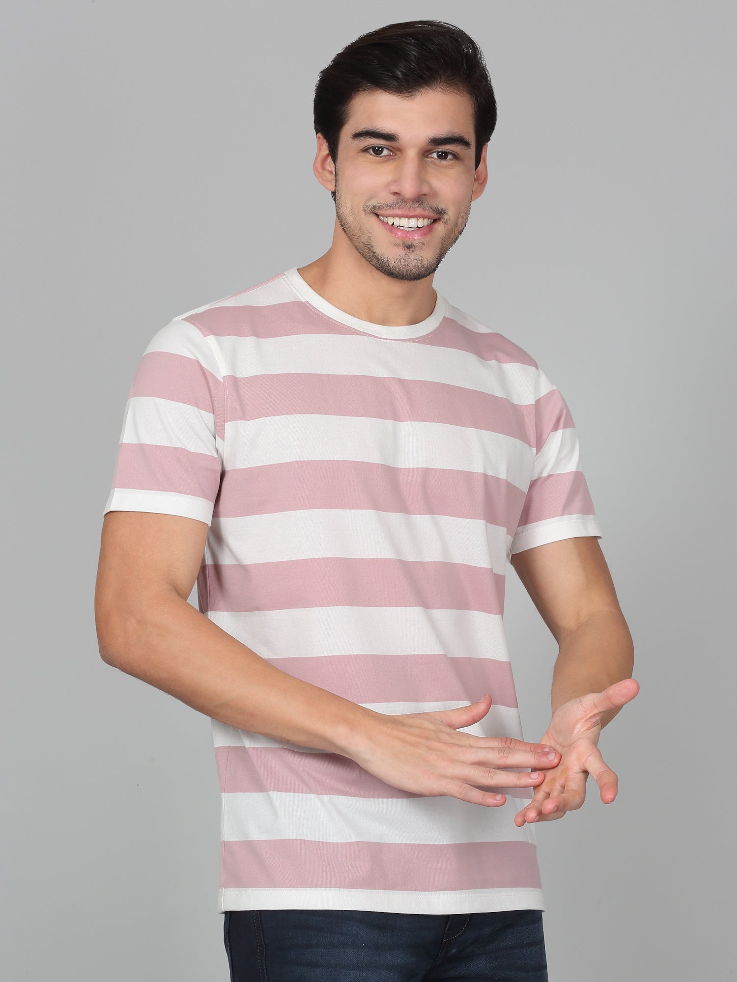 T-Shirt for Men | Breathable & Soft with Color Fastness Regular Fit Round Neck Poly Cotton Fabric Striped Pattern