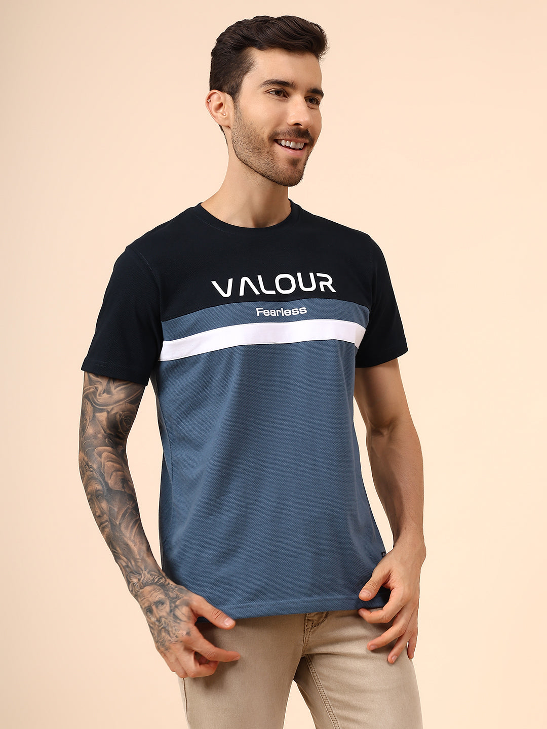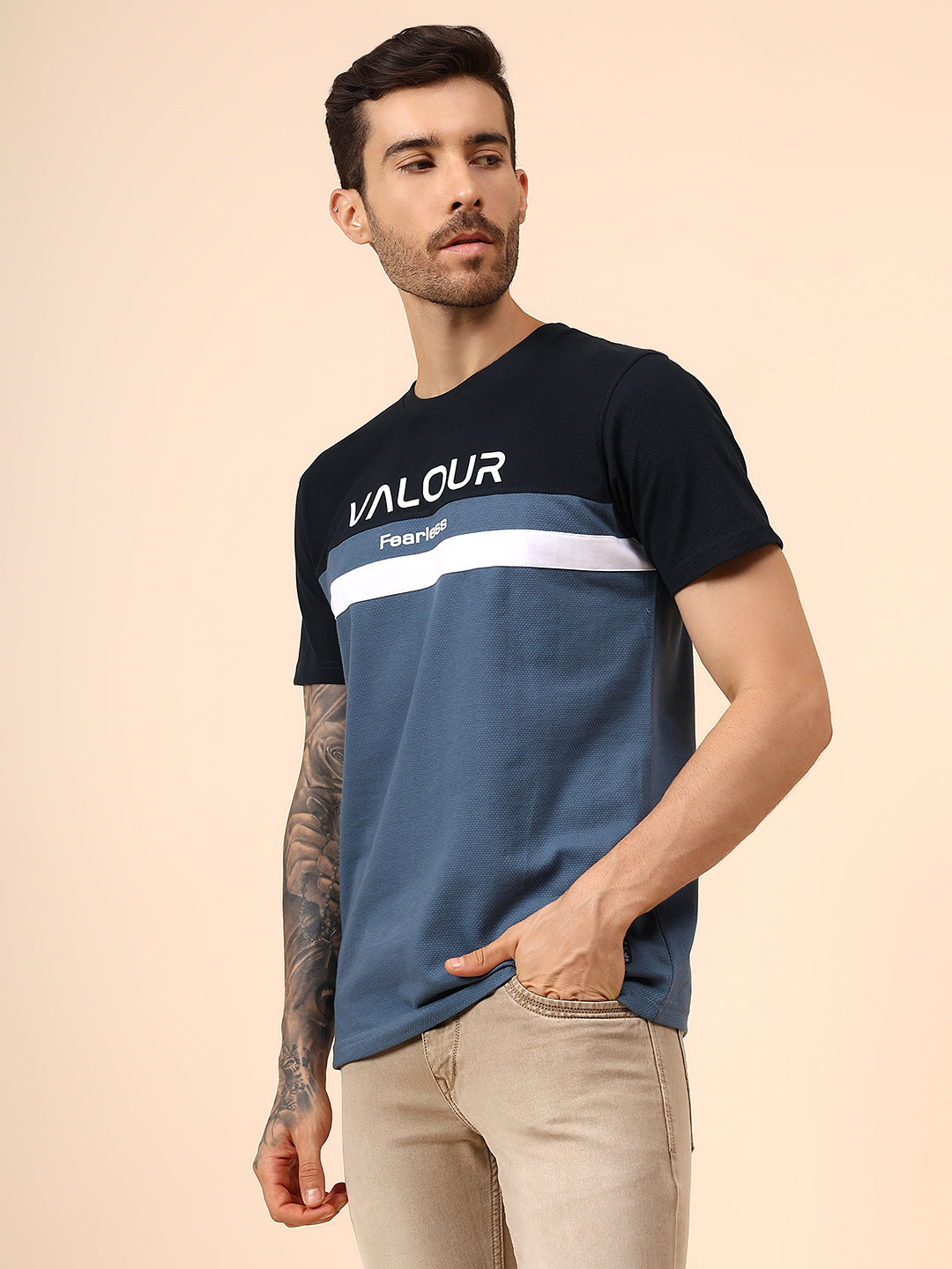 T-Shirt for Men | Breathable & Soft with Color Fastness Regular Fit Round Neck Poly Cotton Fabric Colour Block Pattern