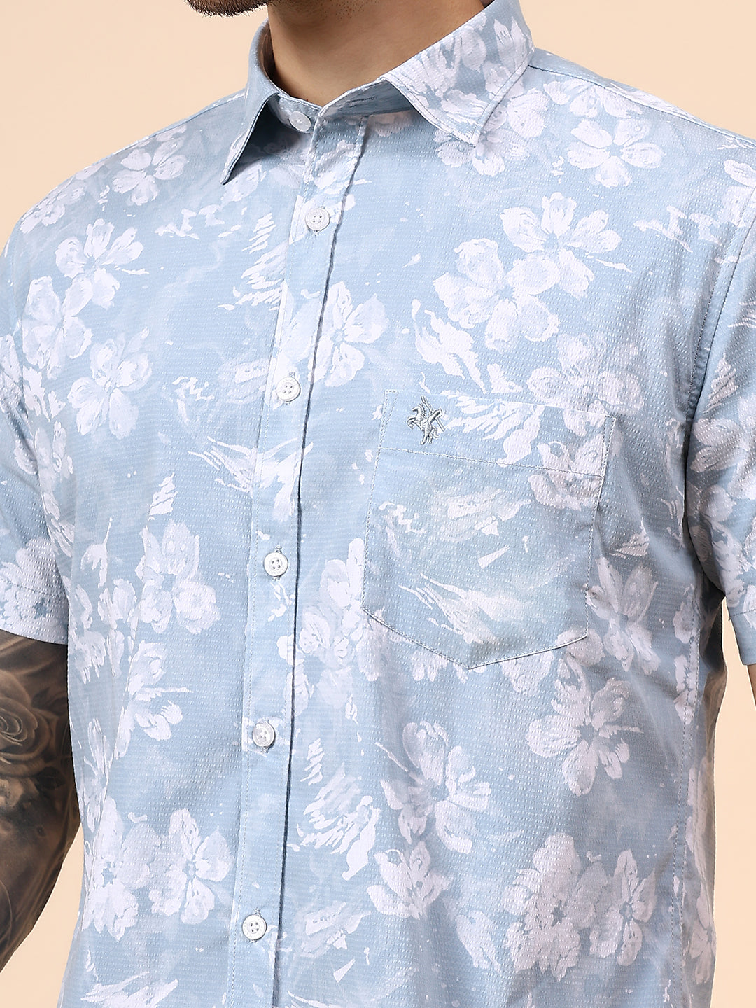 Casual Shirt for Men | Breathable & Soft with Color Fastness Regular Fit Spread Collar Neck Viscose Fabric Printed Pattern