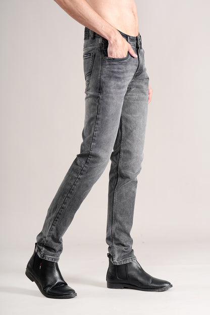 Denim Jeans for Men l Breathable & Soft with Color Fastness Ultra Narrow Fit Cotton Fabric Solid Pattern Button Closure