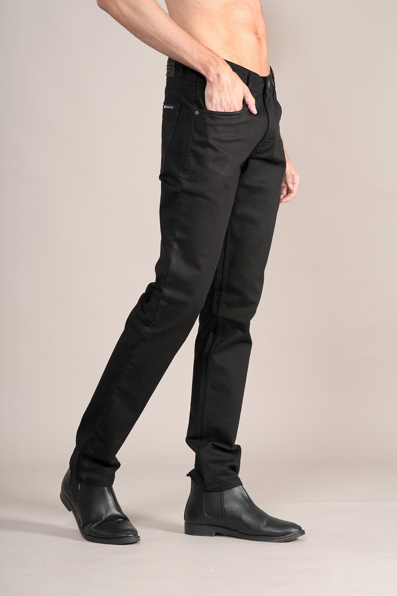 Denim Jeans for Men l Breathable & Soft with Color Fastness Ultra Narrow Fit Cotton Fabric Solid Pattern Button Closure