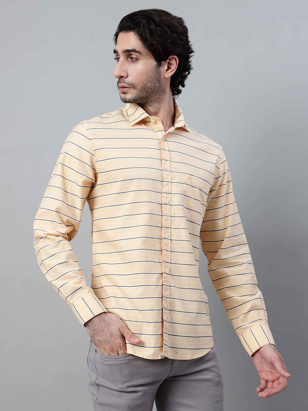Casual Shirt for Men | Breathable & Soft with Color Fastness Regular Fit Spread Collar Neck Cotton Fabric Striped Pattern