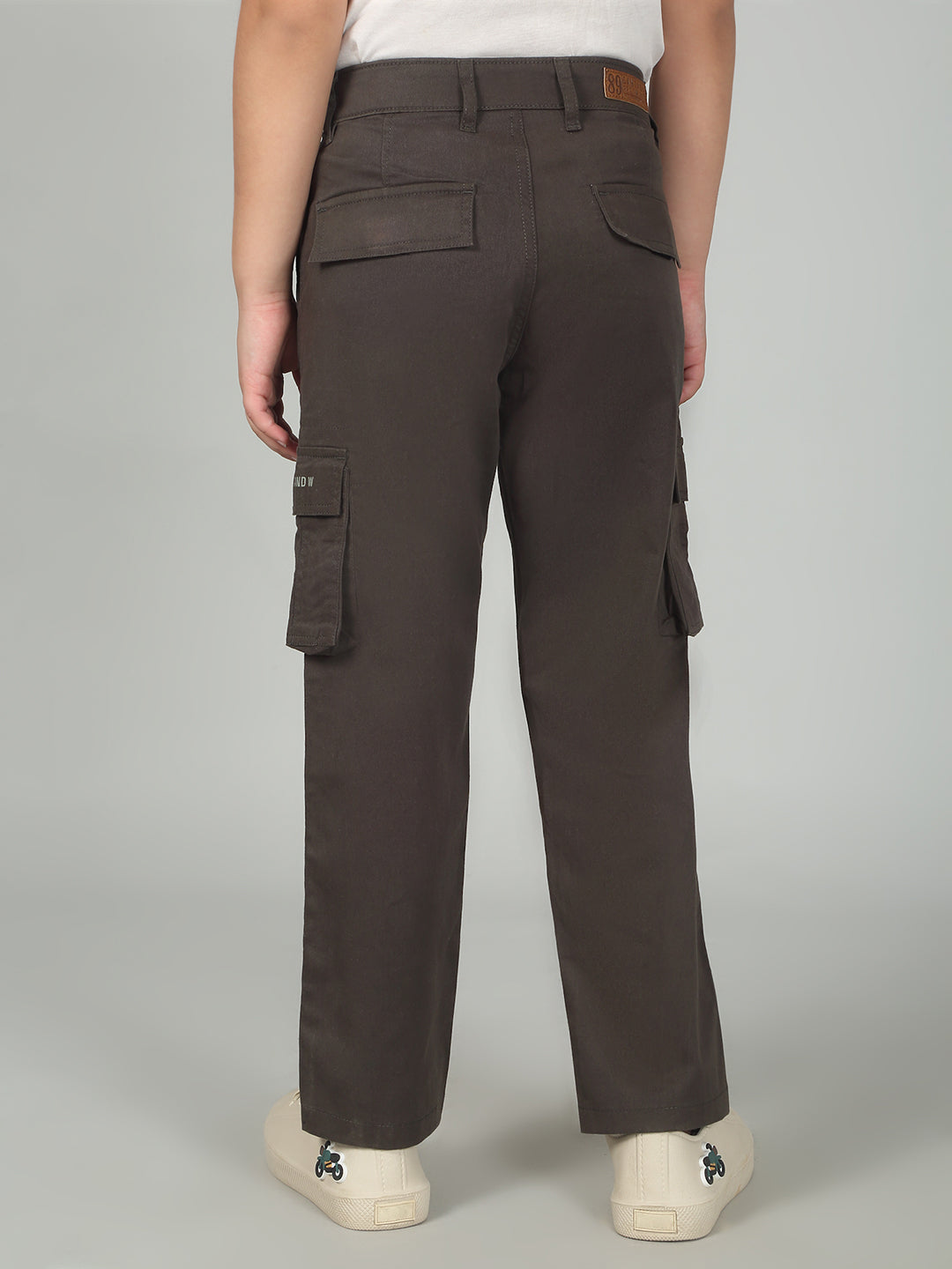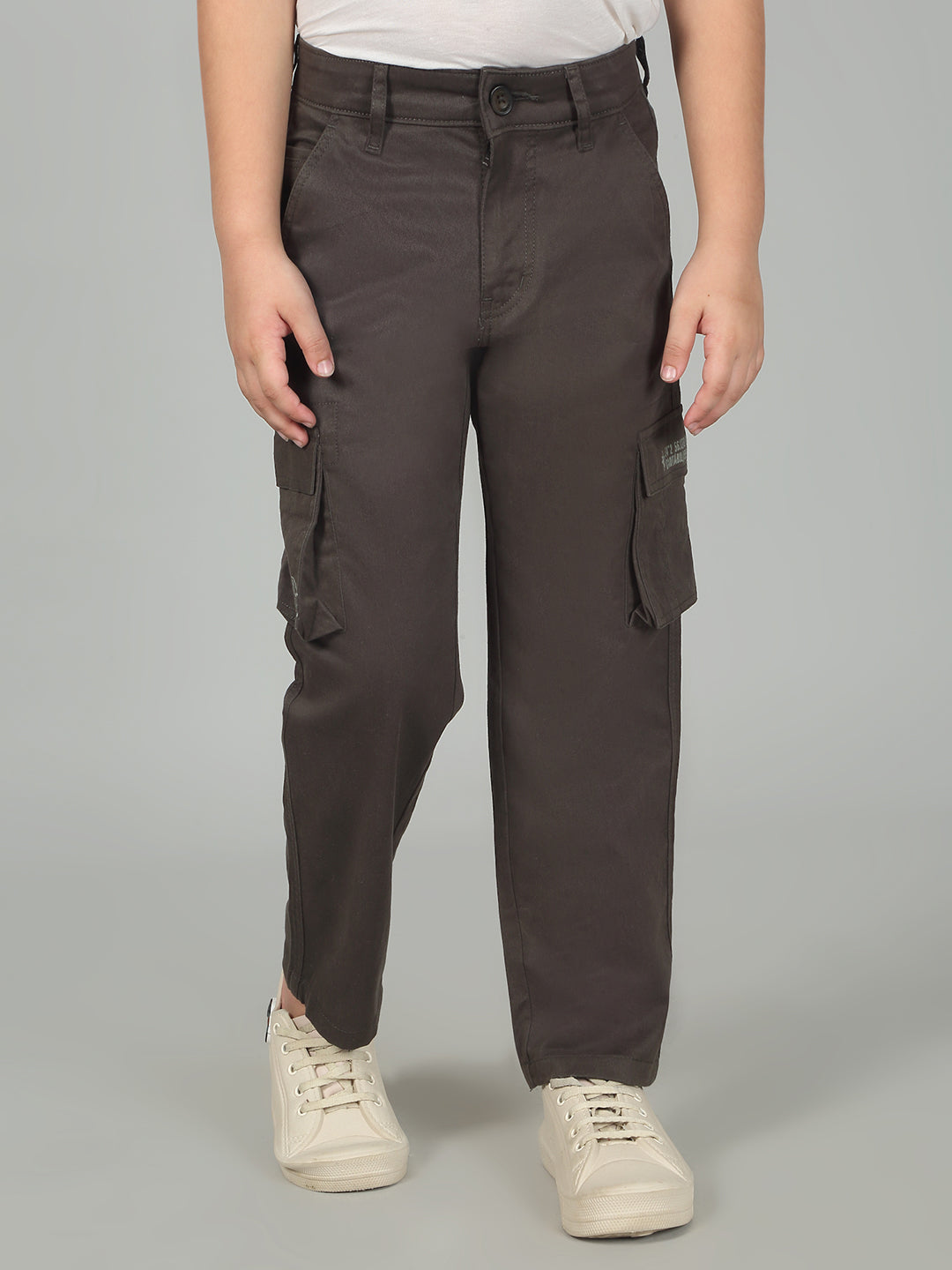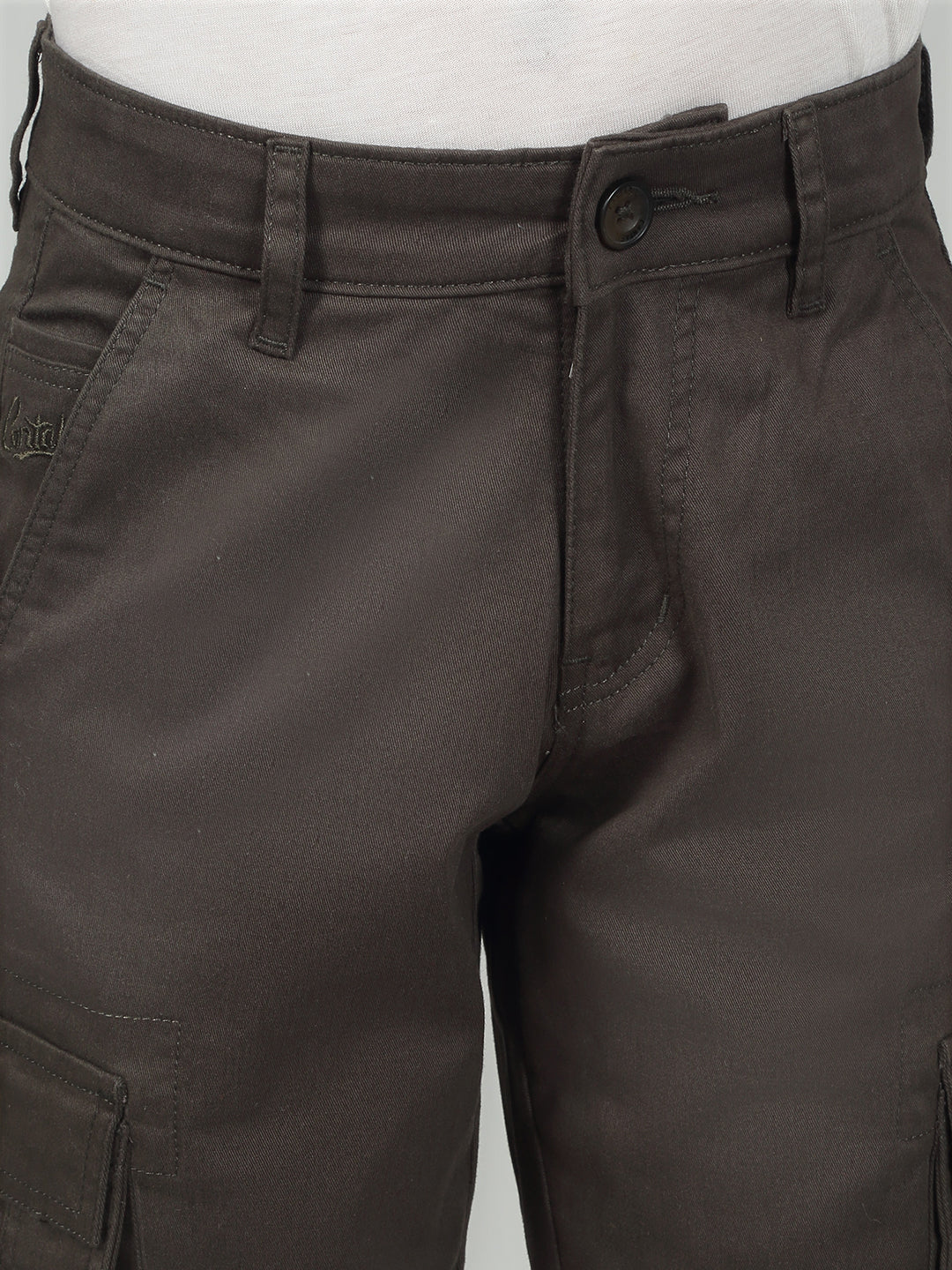 Olive Full Length Solid Regular Fit Casual Cargo for Boys