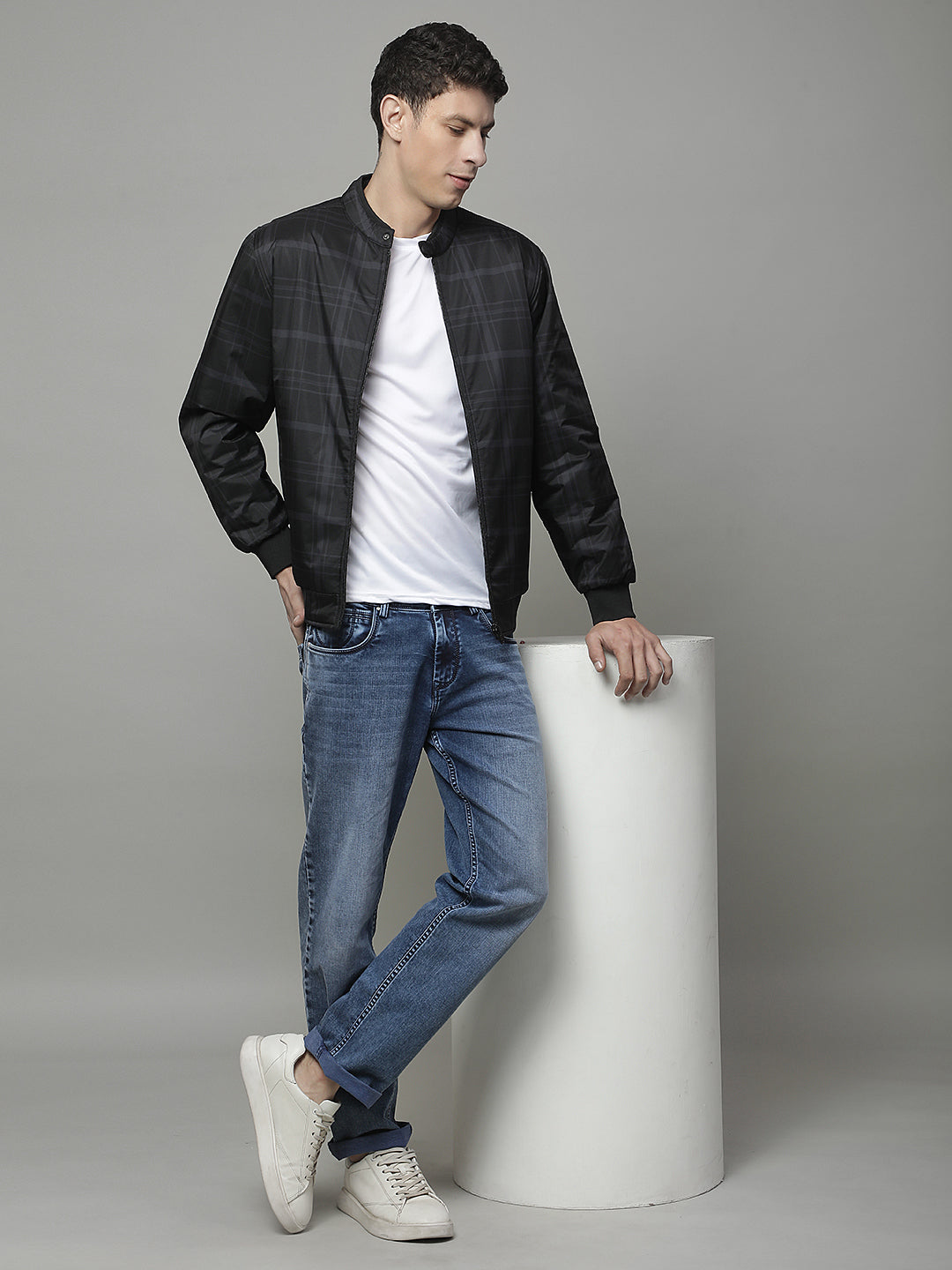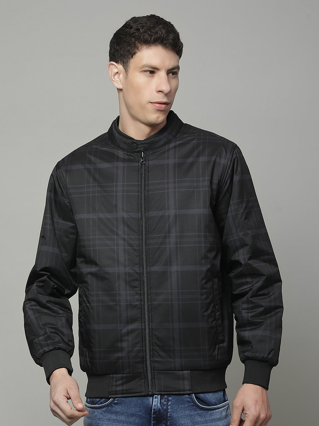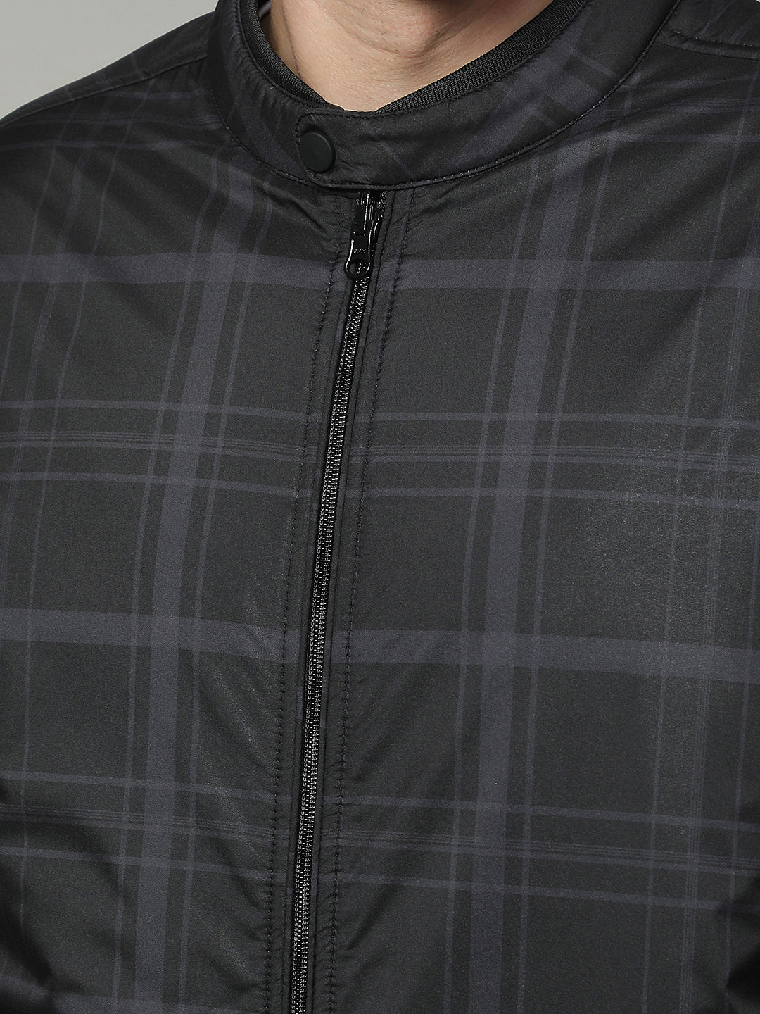 Reversible Jacket for Men | Premium Casual Jacket Regular Fit Mock Neck Poly Blend Fabric Check Pattern