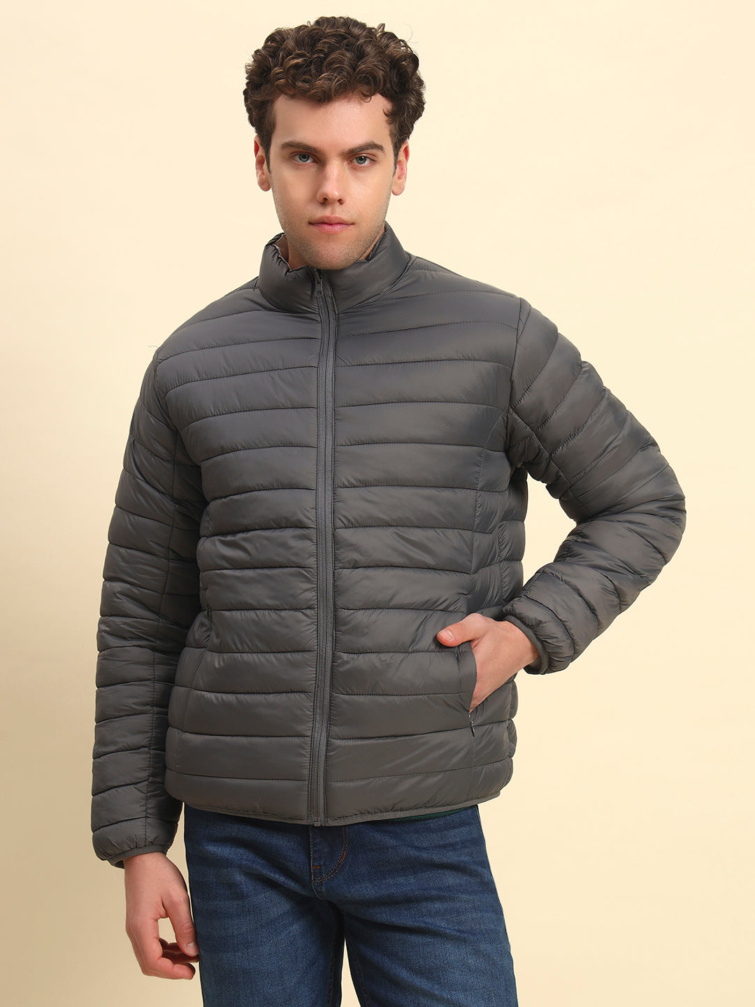 Reversible Jacket for Men | Premium Casual Jacket Smart Fit Mock Neck Nylon Fabric Solid Pattern