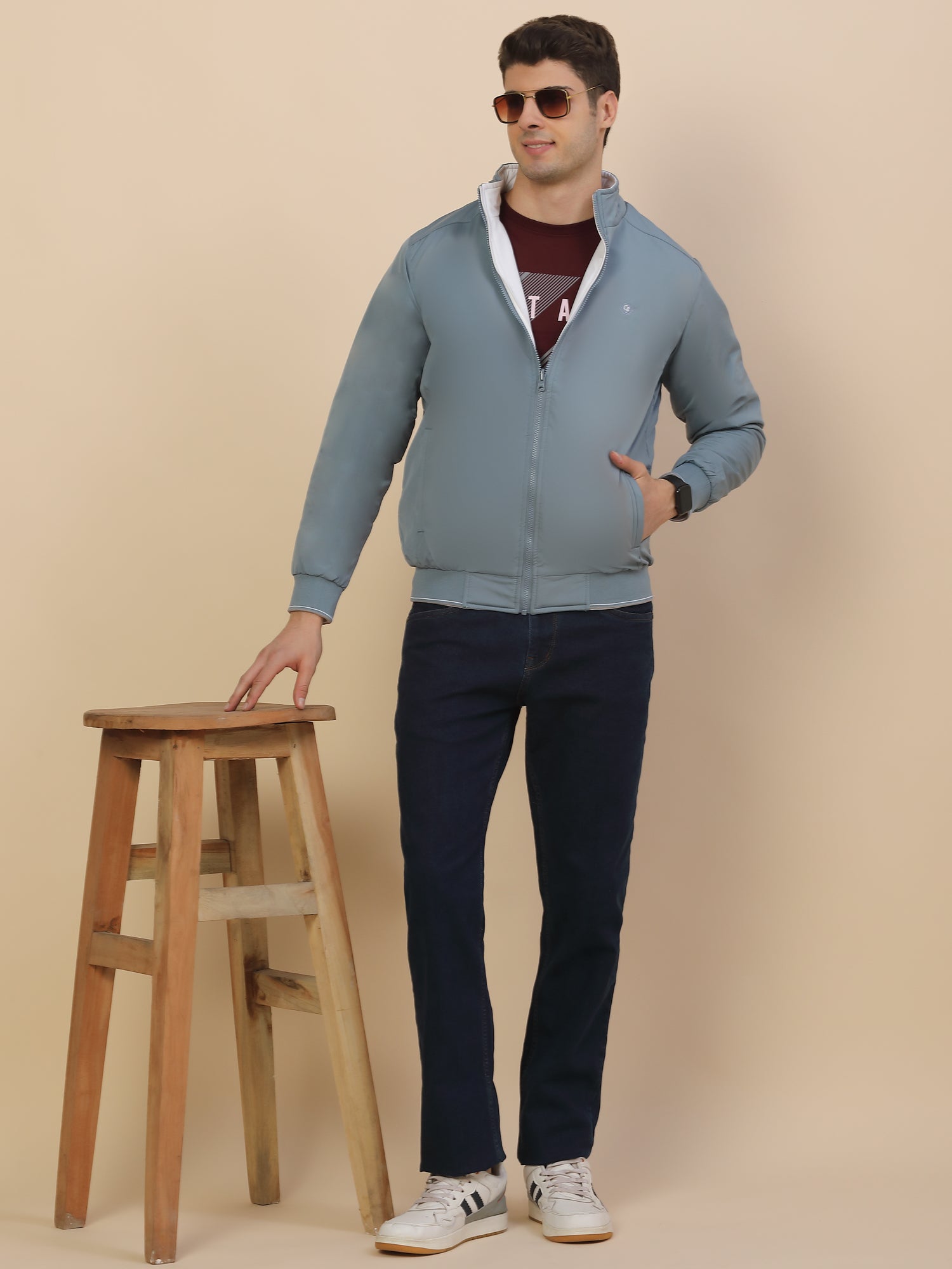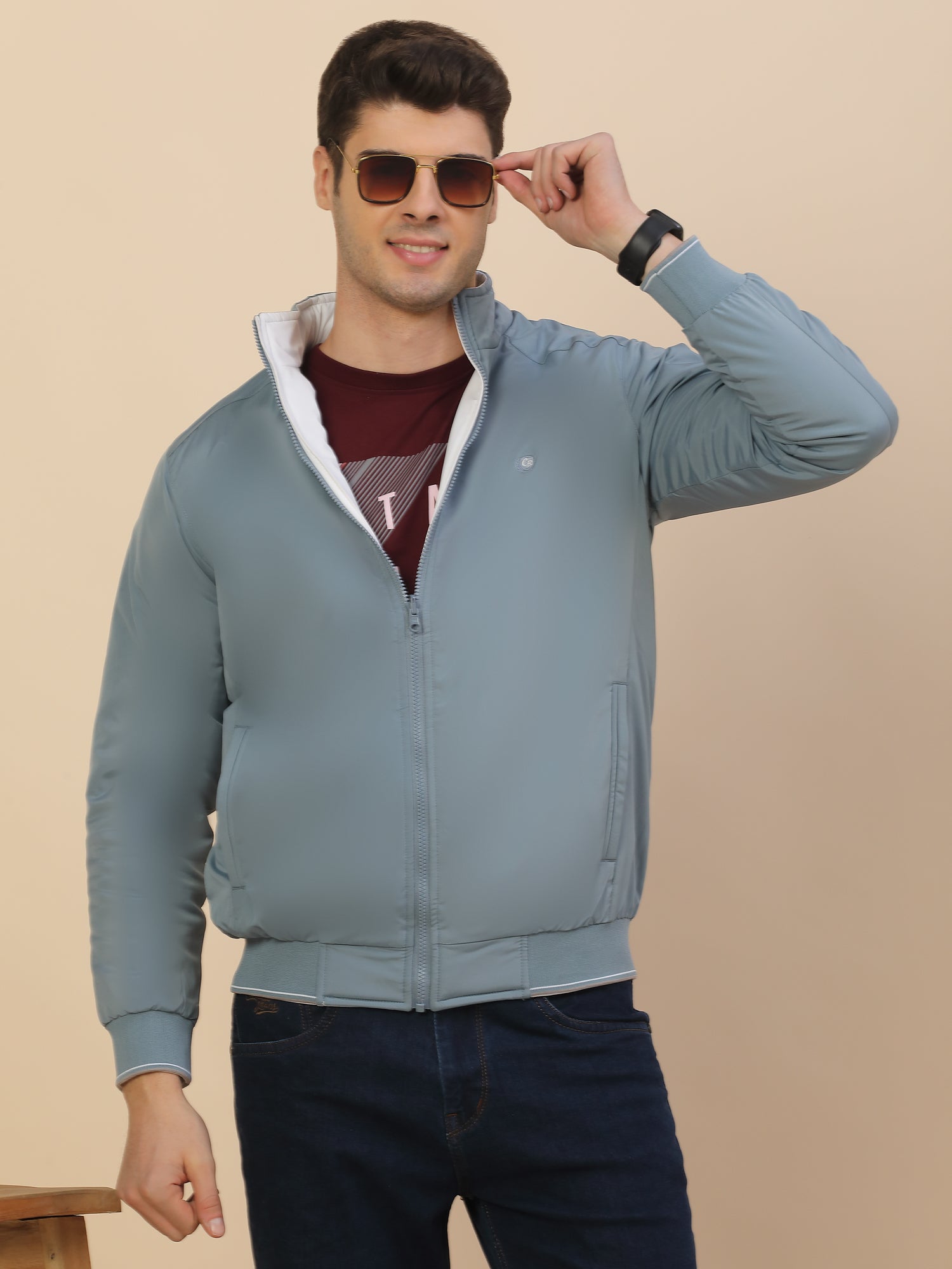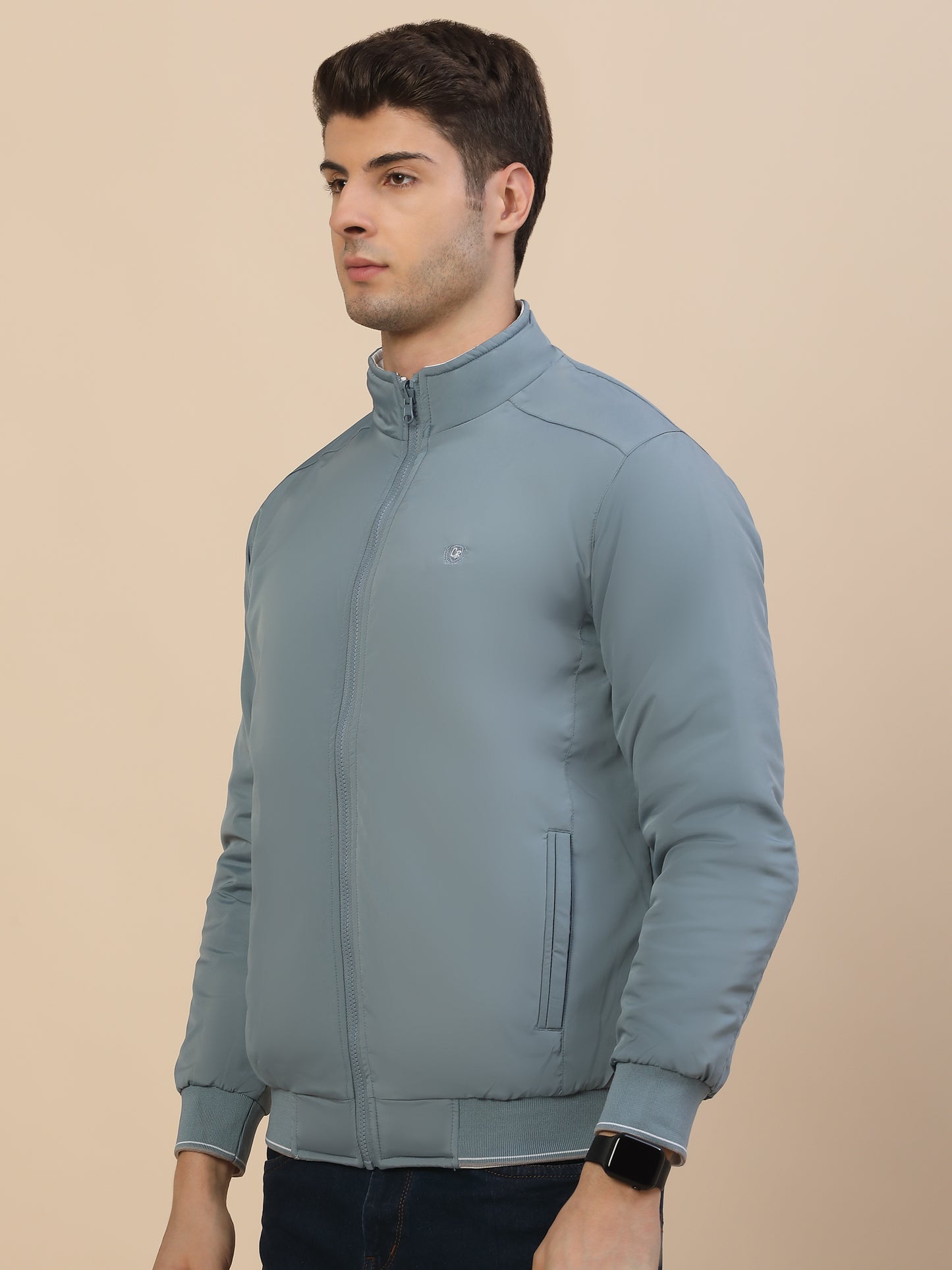 Reversible Jacket for Men | Premium Casual Jacket Smart Fit Mock Neck Poly Blend Fabric Solid Pattern