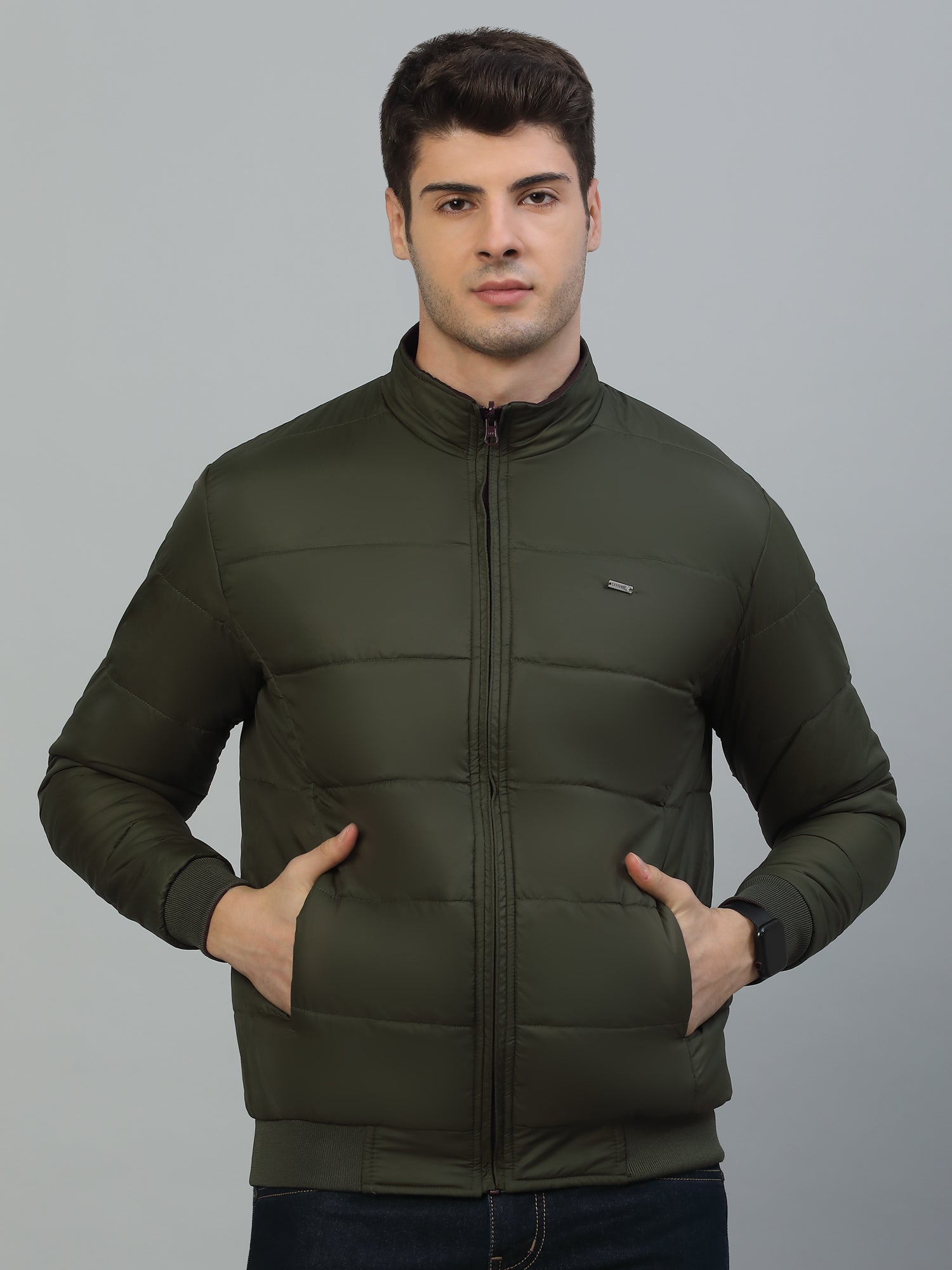 Reversible Jacket for Men | Premium Casual Jacket Smart Fit Mock Neck Poly Blend Fabric Solid Pattern