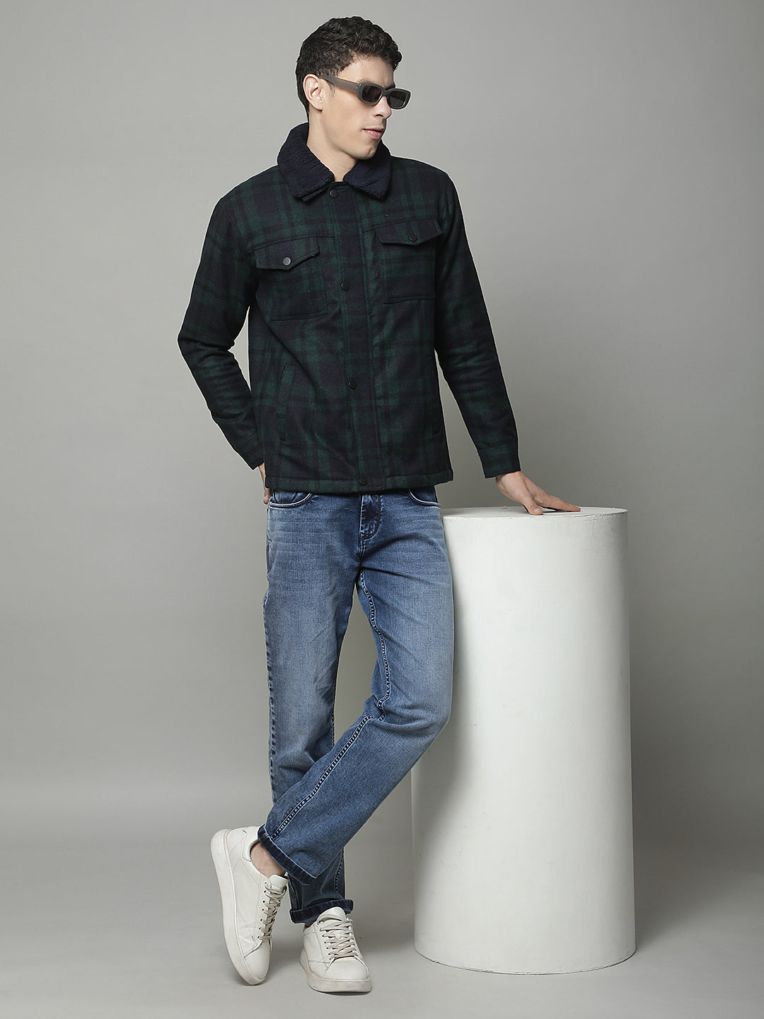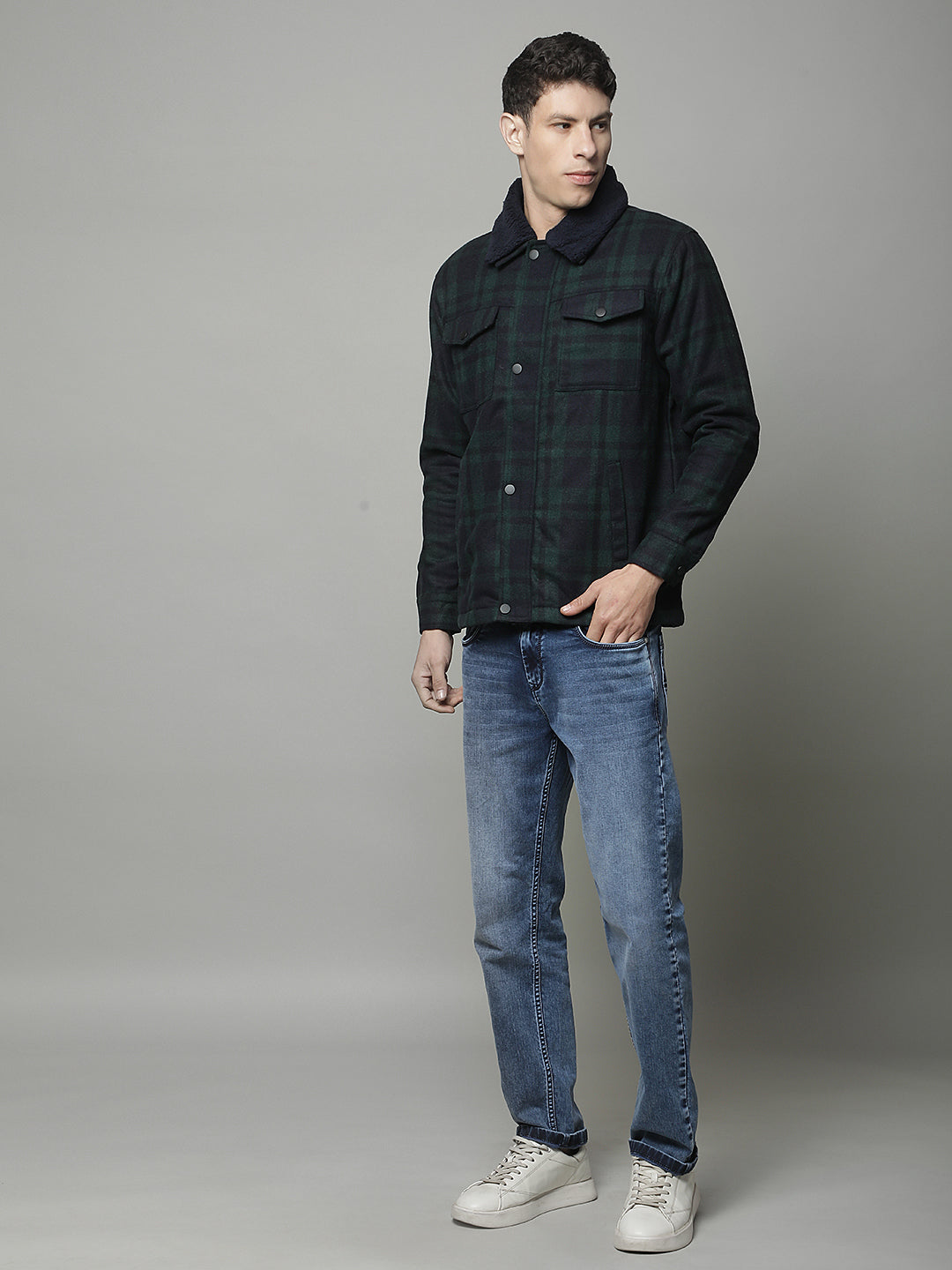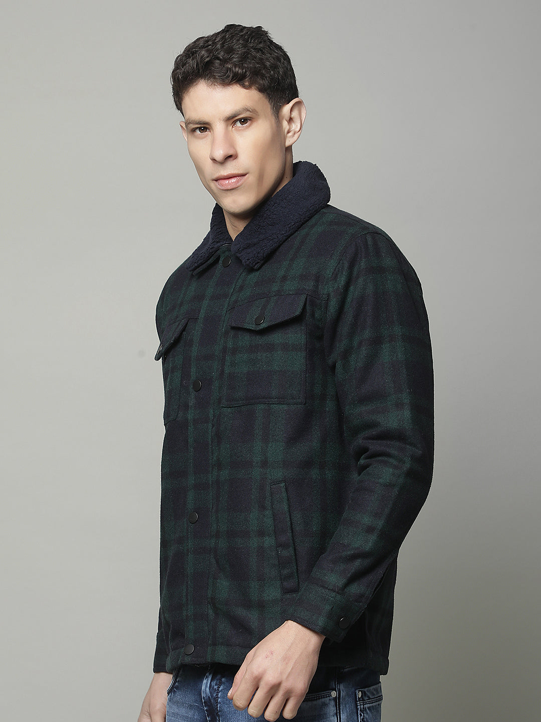 Shacket for Men | Premium Casual Shacket Regular Fit Spread Collar Tweed Fabric Check Pattern
