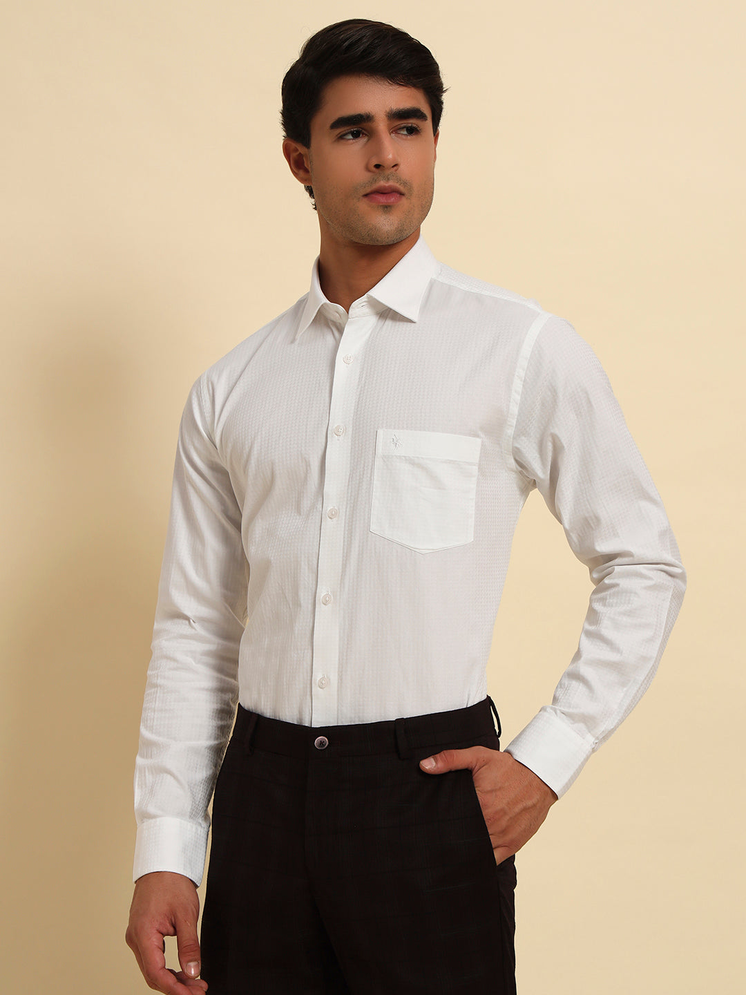 Formal Shirt for Men l Breathable & Soft with Color Fastness Regular Fit Spread Collar Neck Cotton Fabric Self Design Pattern