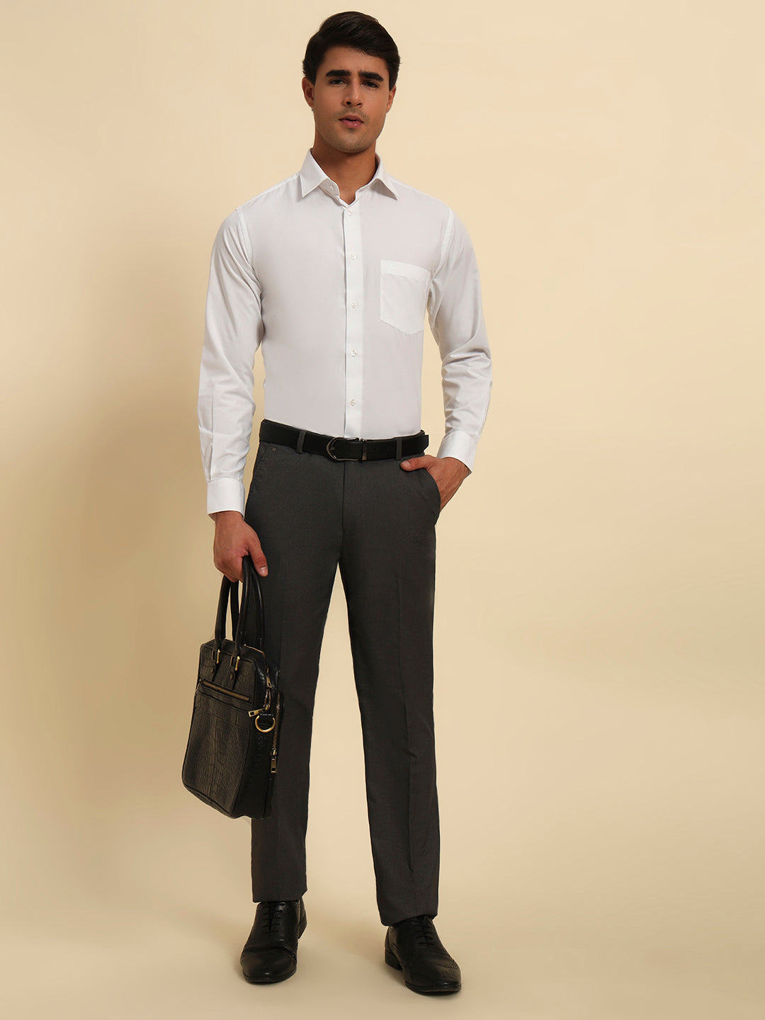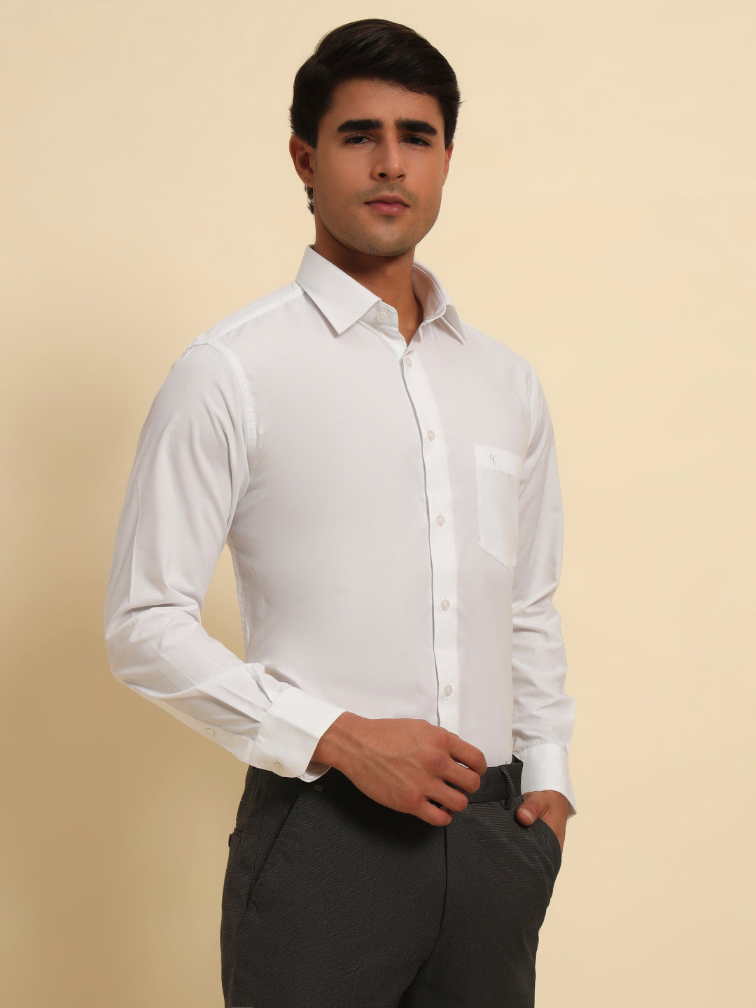 Formal Shirt for Men l Breathable & Soft with Color Fastness Regular Fit Spread Collar Neck Poly Cotton Fabric Solid Pattern
