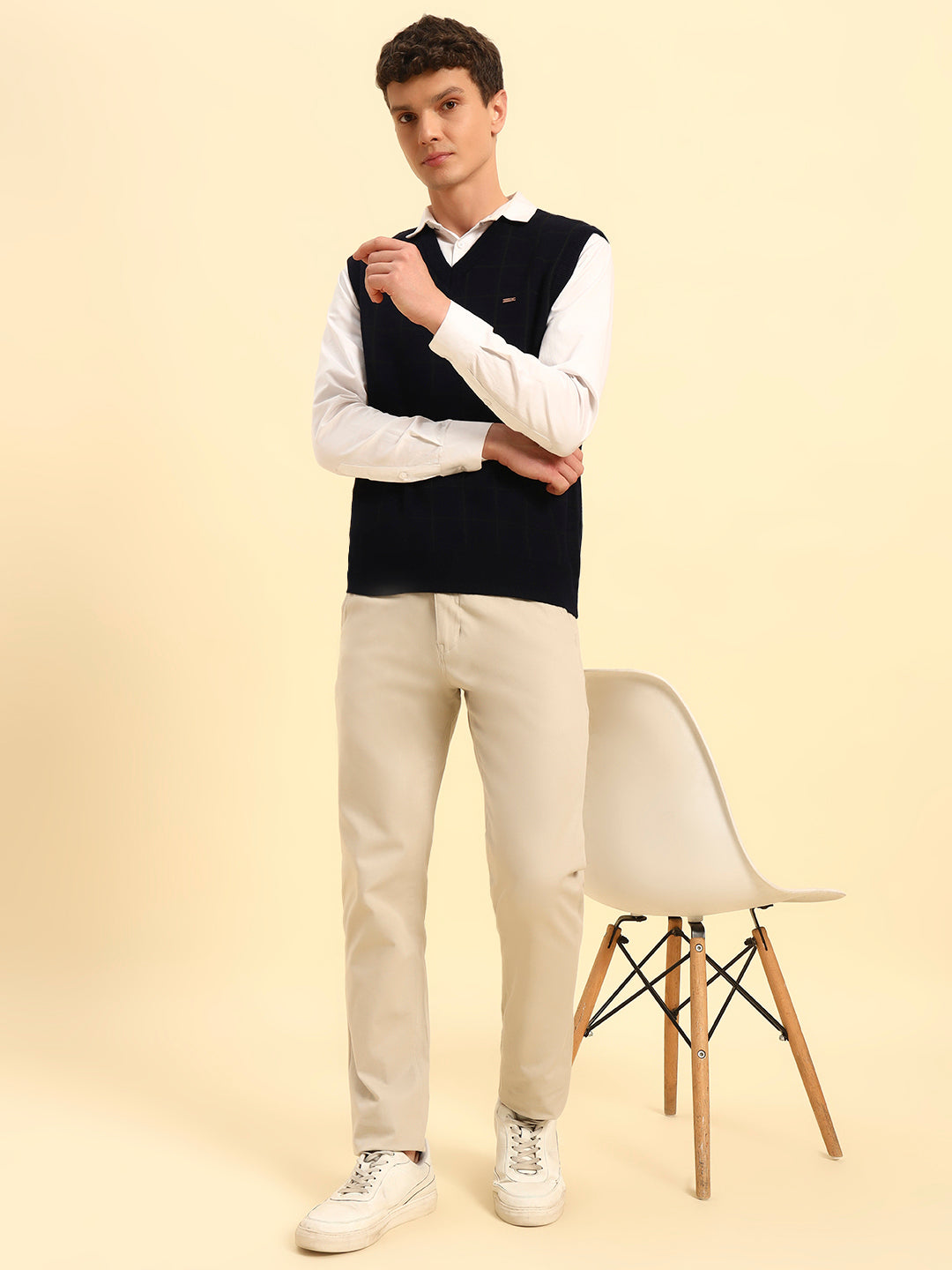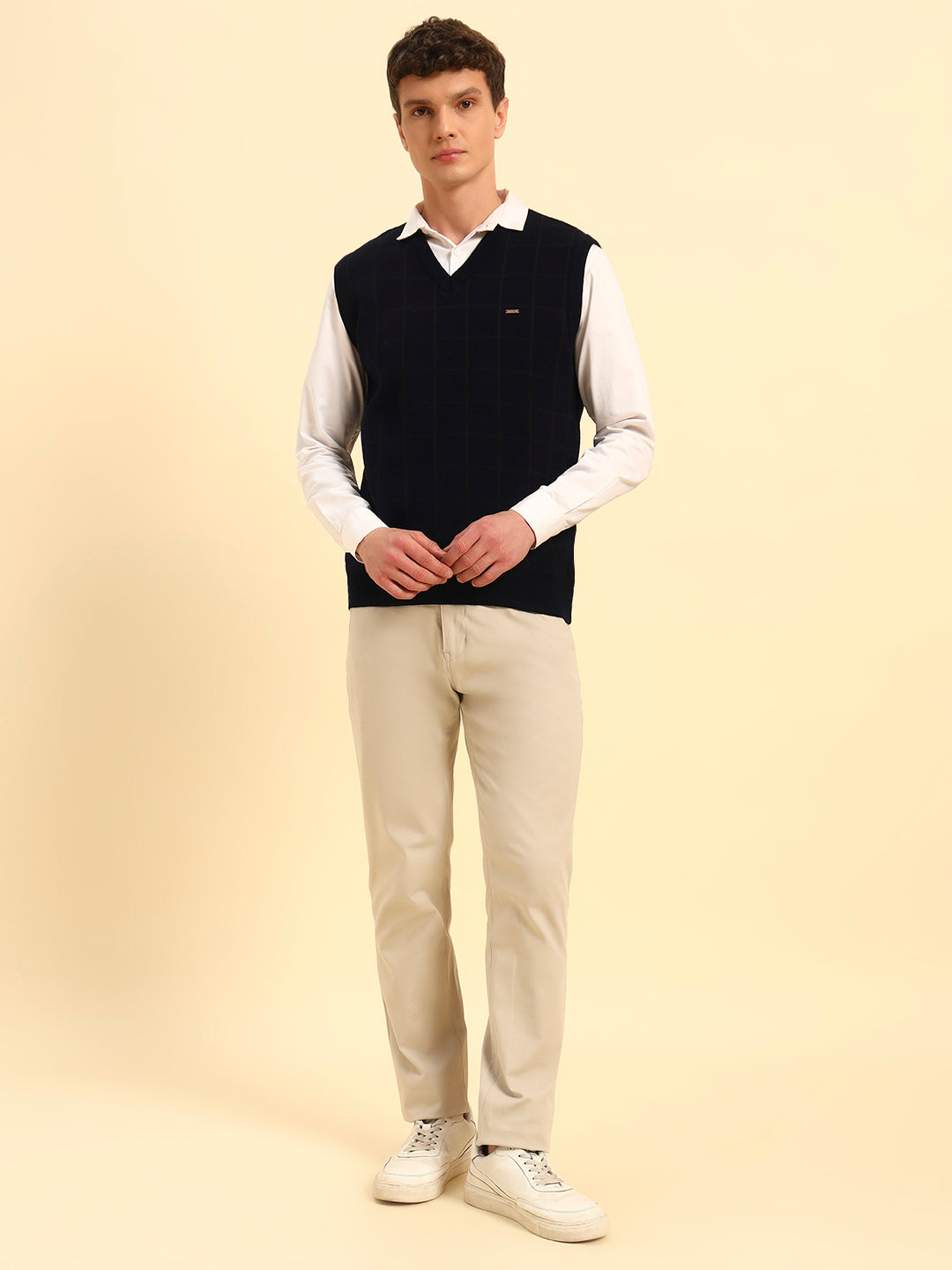 Sweater for Men | Winter Wear Acrylic Fabric Pull-On Closure V-Neck Regular Fit Checkered Pattern