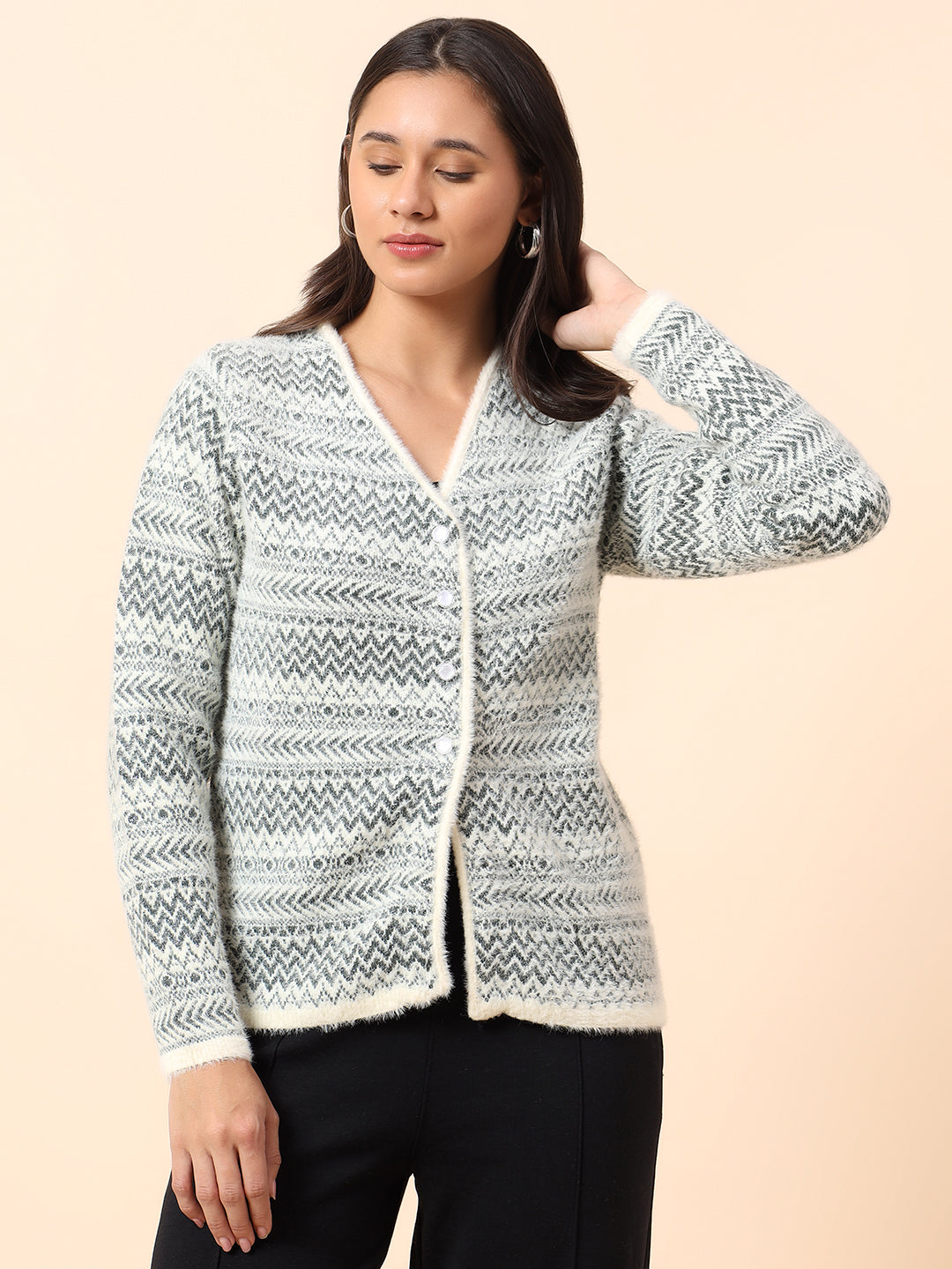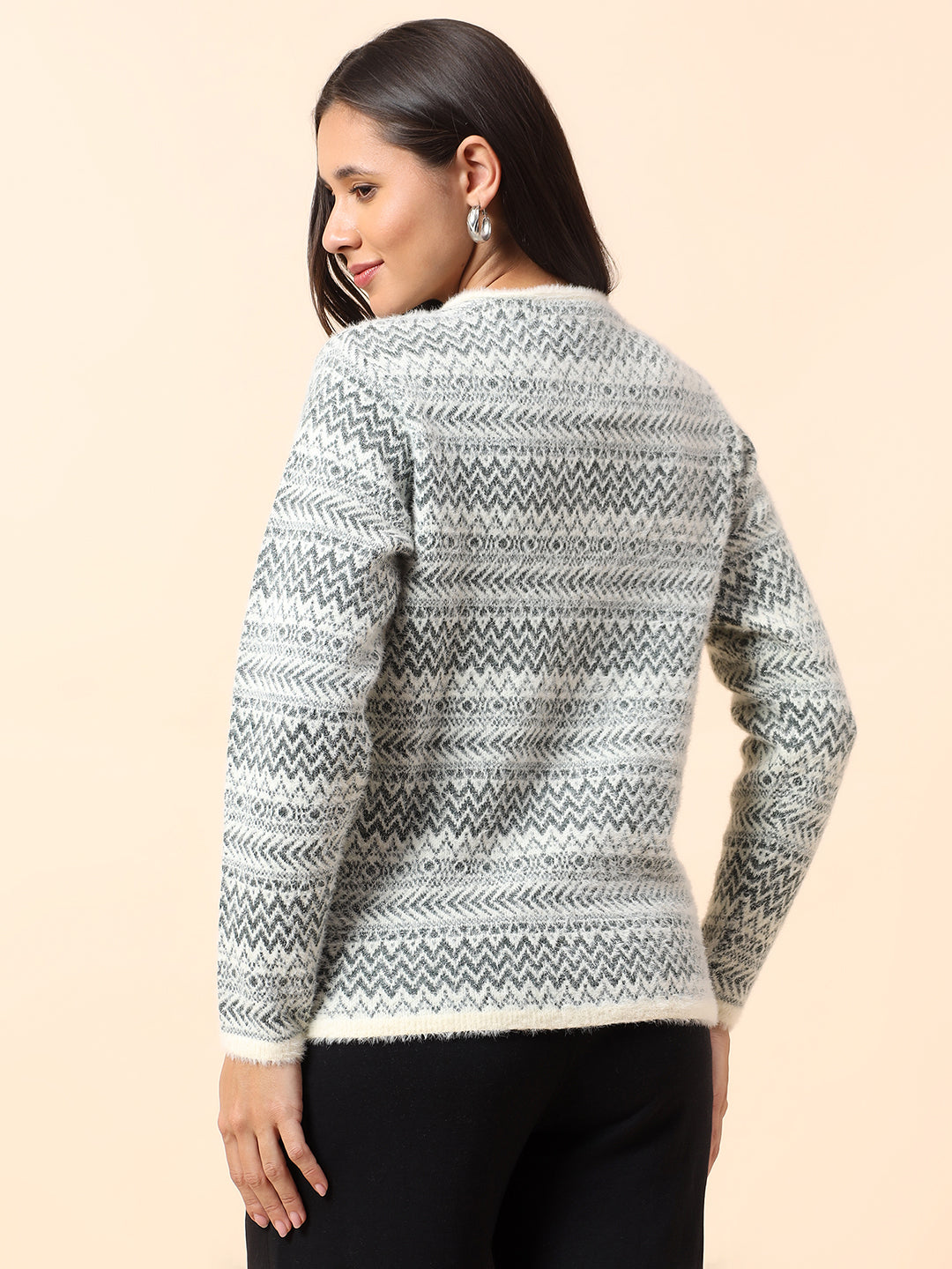 Sweater for Women l Winter Wear Fancy Fabric V-Neck Regular Fit Printed Pattern