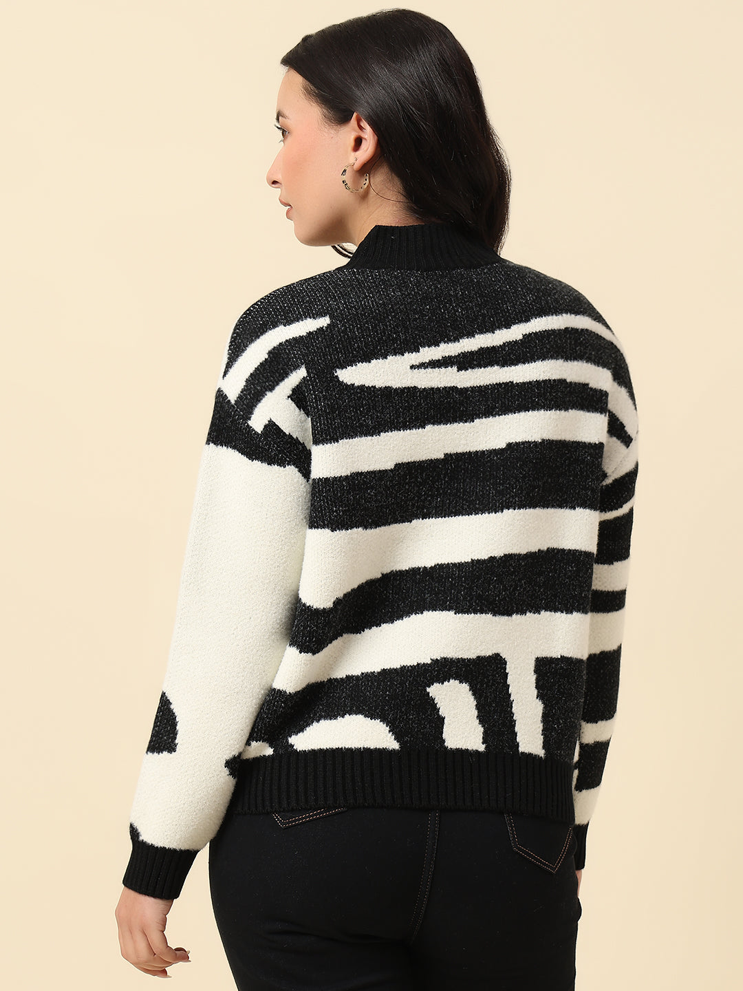 Sweater for Women | Winter Wear Fancy Fabric Round Neck Regular Fit Striped Pattern