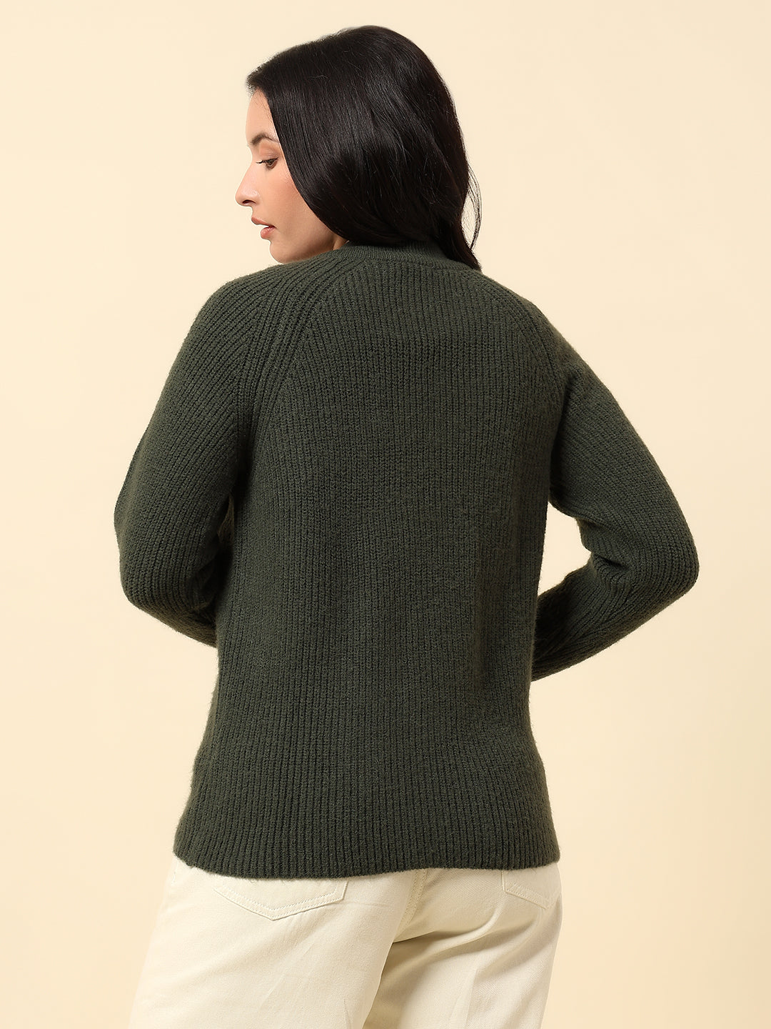 Sweater for Women | Winter Wear Knitted Fabric Round Neck Regular Fit Solid Pattern