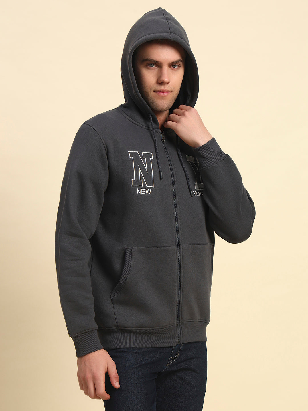 Sweatshirt for Men | Winter Wear Fleece Fabric Zipper Closure Hooded Neck Regular Fit Printed Pattern
