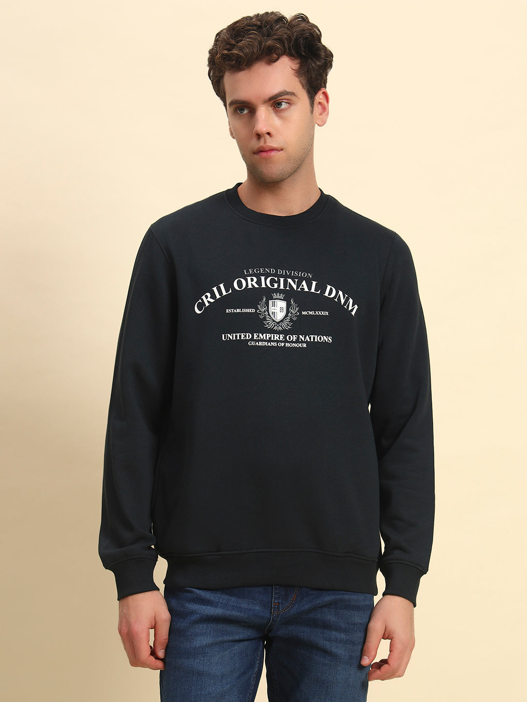 Sweatshirt for Men | Winter Wear Poly Cotton Fabric Pull-On Closure Round Neck Regular Fit Printed Pattern
