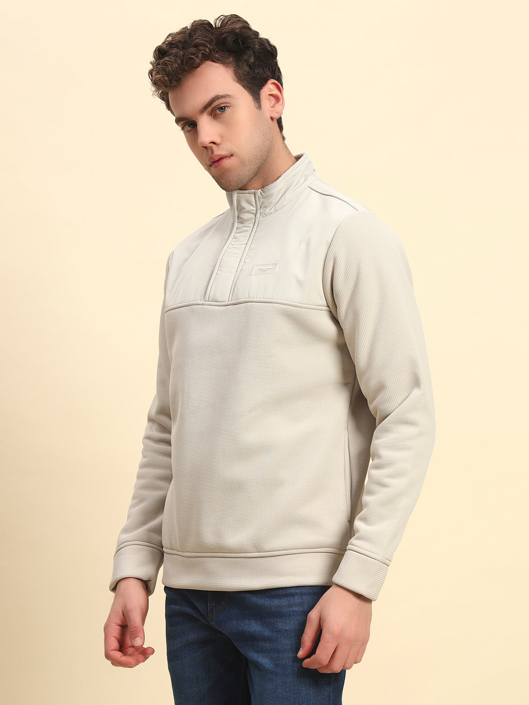 Sweatshirt for Men | Winter Wear Poly Cotton Fabric Zipper Closure Mock Neck Regular Fit Solid Pattern