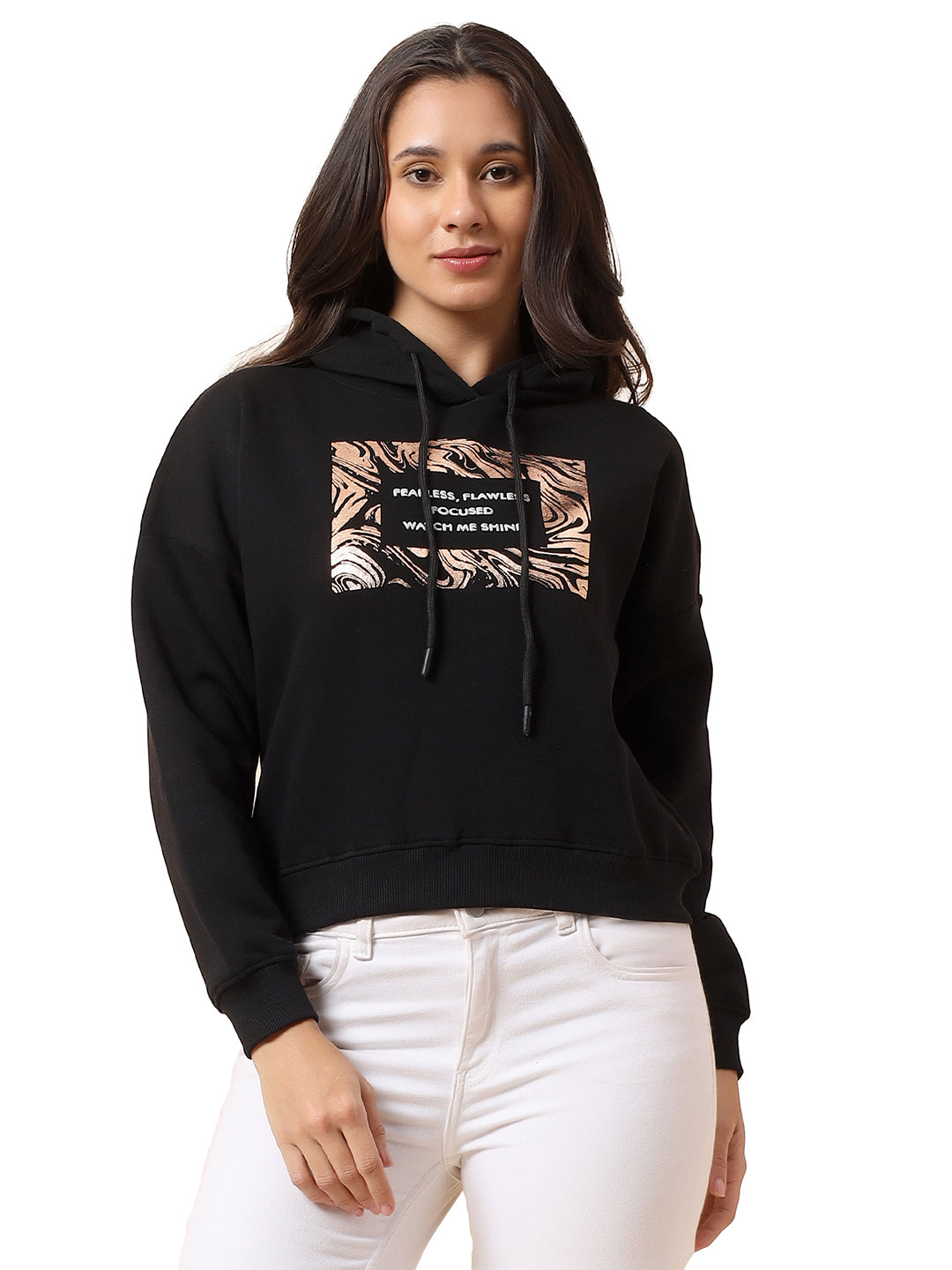 Crop Sweatshirt for Women l Winter Wear Poly Cotton Fabric Closure Hooded Regular Fit Printed Pattern