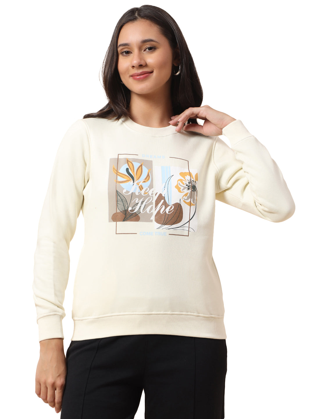 Sweatshirt for Women l Winter Wear Poly Cotton Fabric Closure Pull-On Regular Fit Printed Pattern