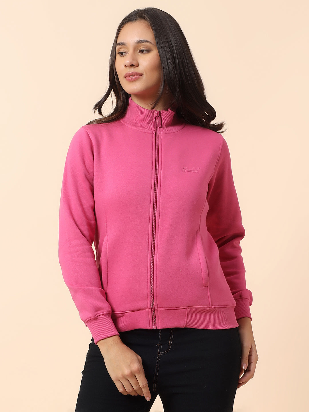 Sweatshirt for Women l Winter Wear Poly Cotton Fabric Closure Zipper Regular Fit Solid Pattern