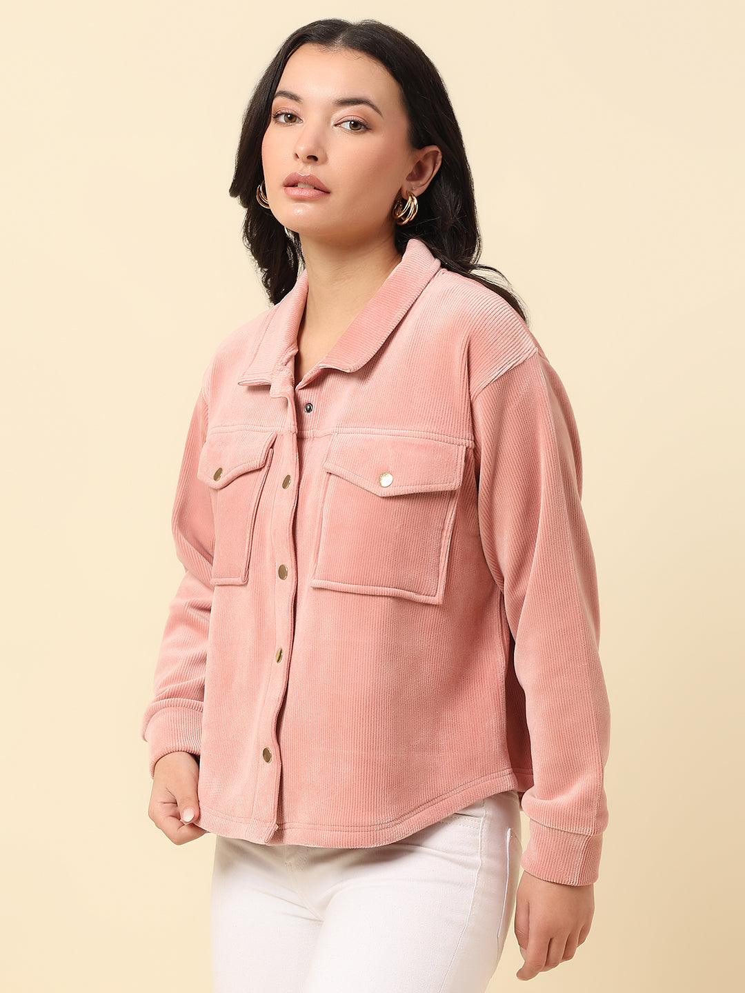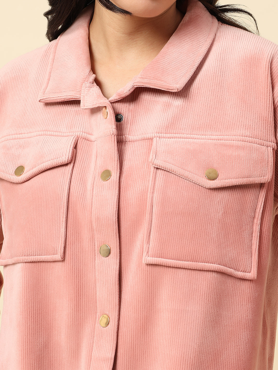 Sweatshirt for Women |Winter Wear Corduroy Fabric Button Closure Regular Fit Solid Pattern