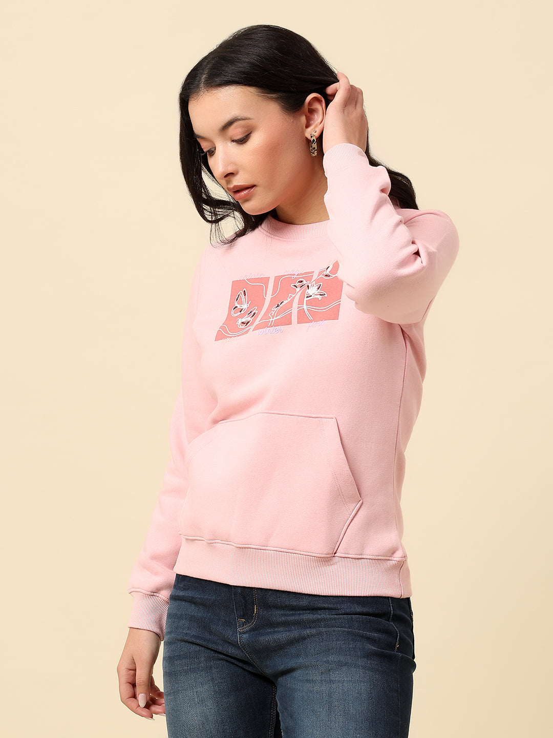 Sweatshirt for Women |Winter Wear Fleece Fabric Pull-On Closure Regular Fit Printed Pattern