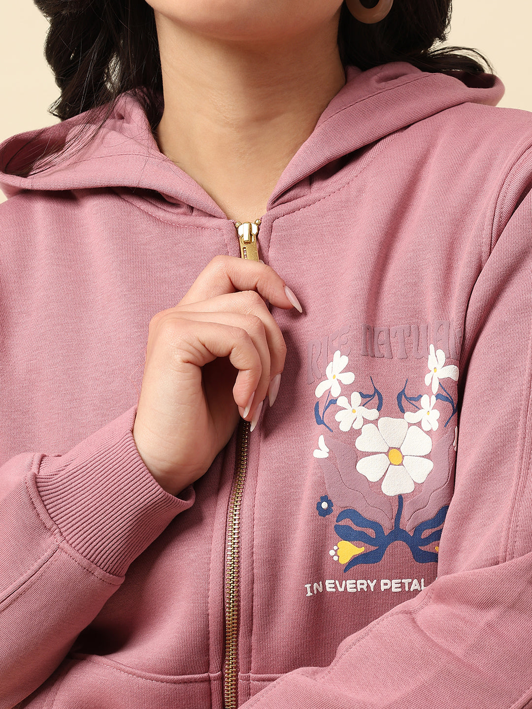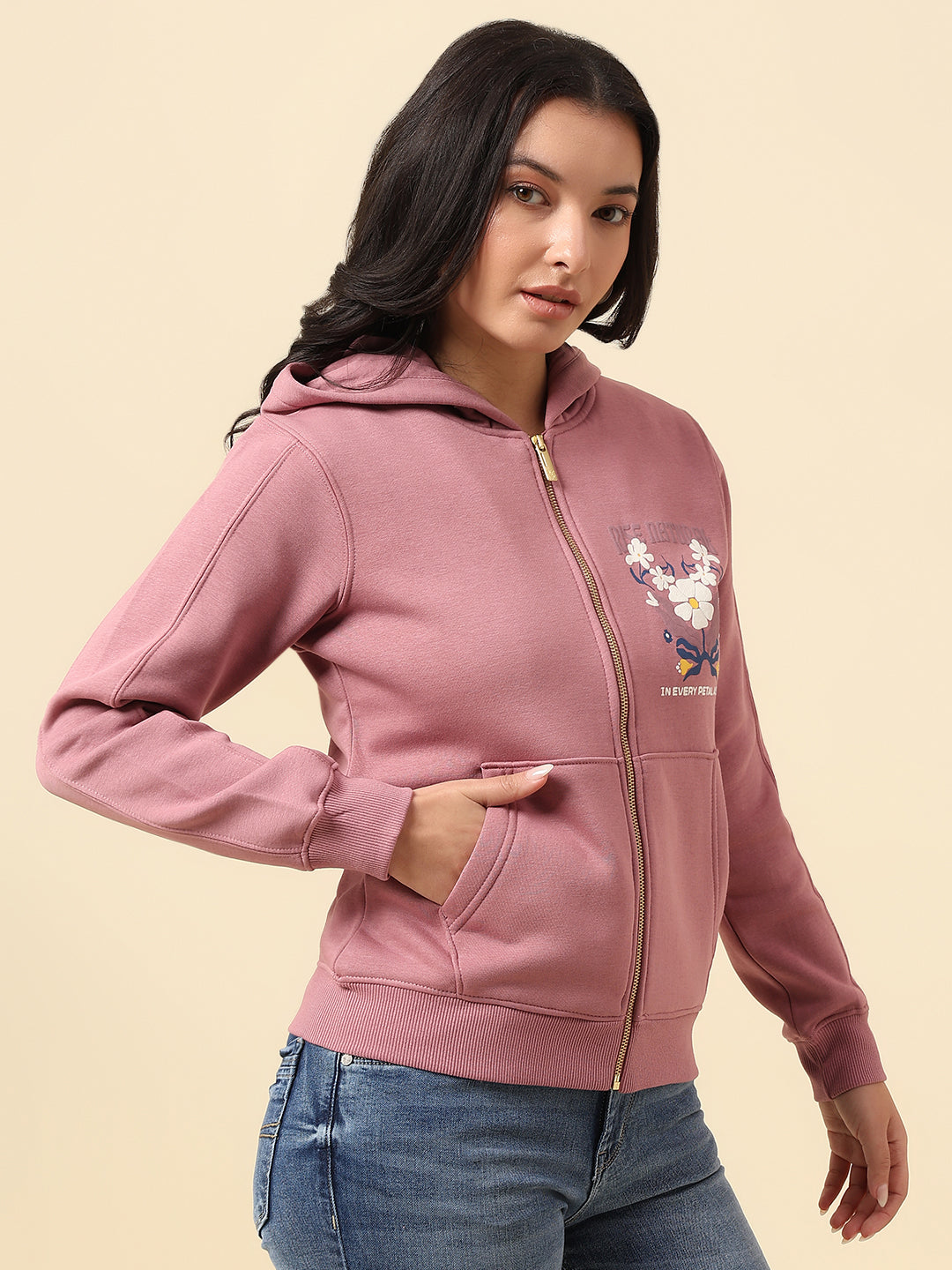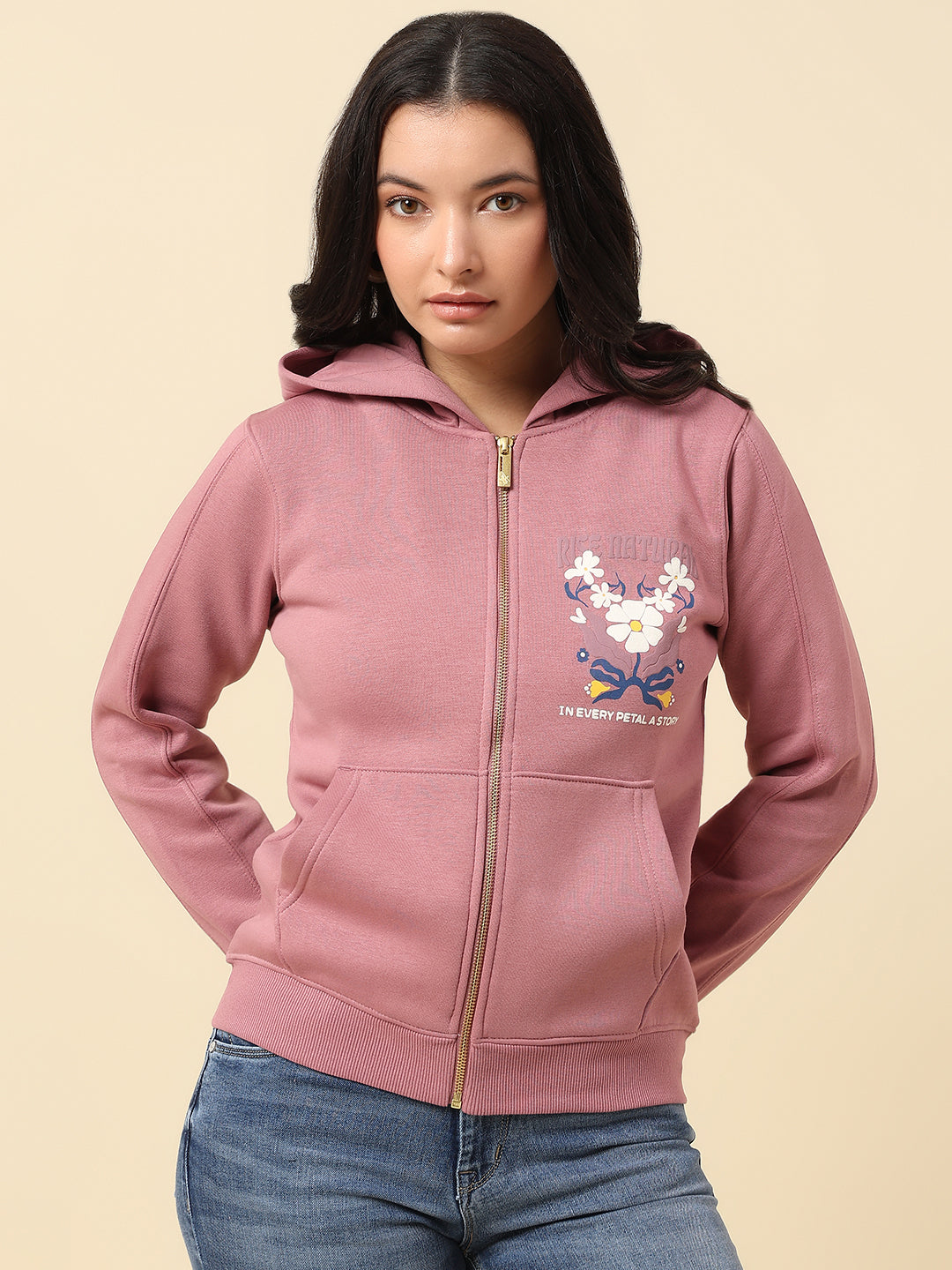 Sweatshirt for Women |Winter Wear Fleece Fabric Zipper Closure Regular Fit Printed Pattern