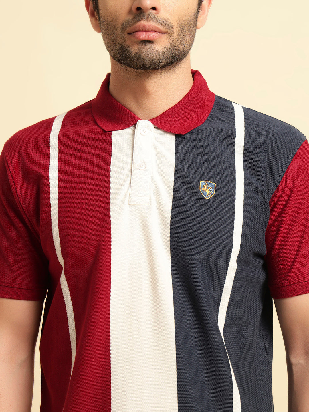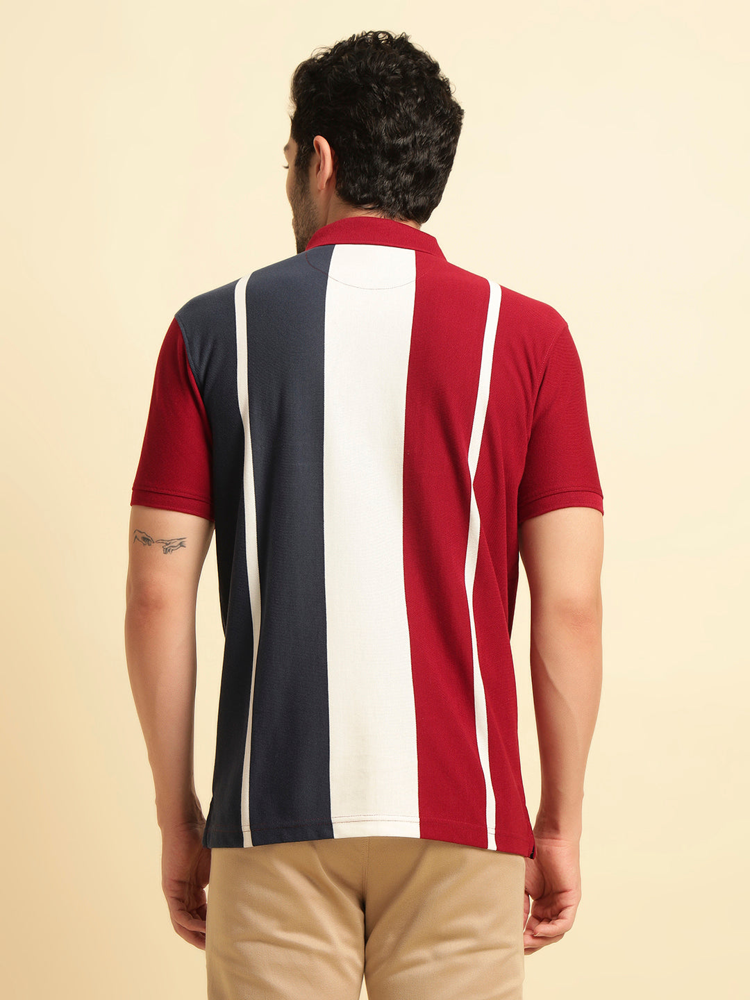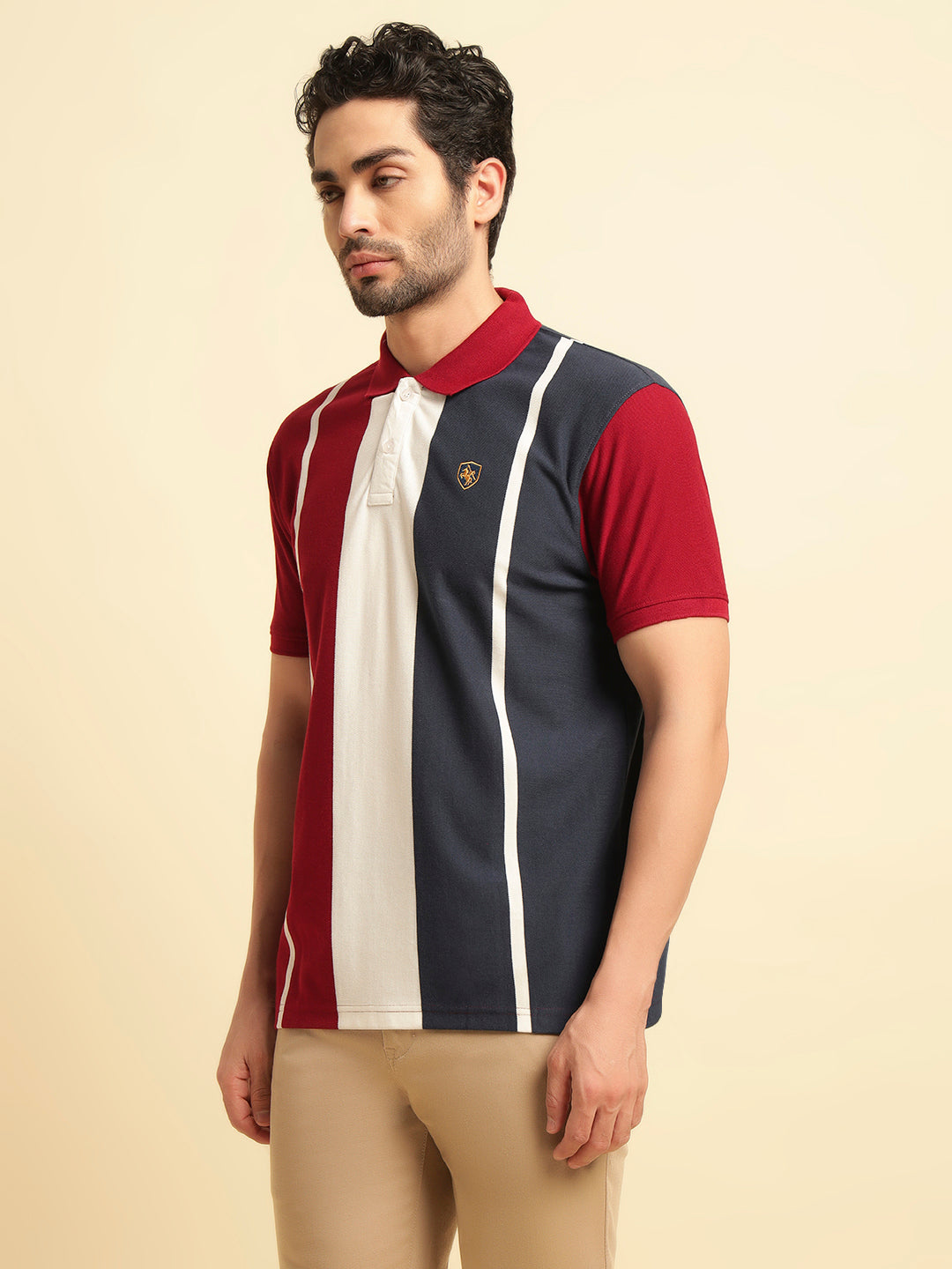 T-Shirt for Men | Breathable & Soft with Color Fastness Regular Fit Polo Neck Poly Cotton Fabric Colour Block Pattern
