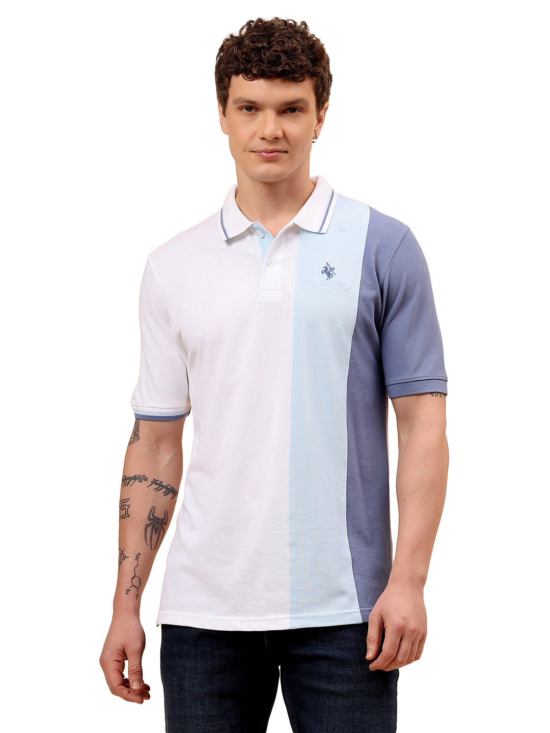 T-Shirt for Men | Breathable & Soft with Color Fastness Regular Fit Polo Neck Poly Cotton Fabric Colour Block Pattern