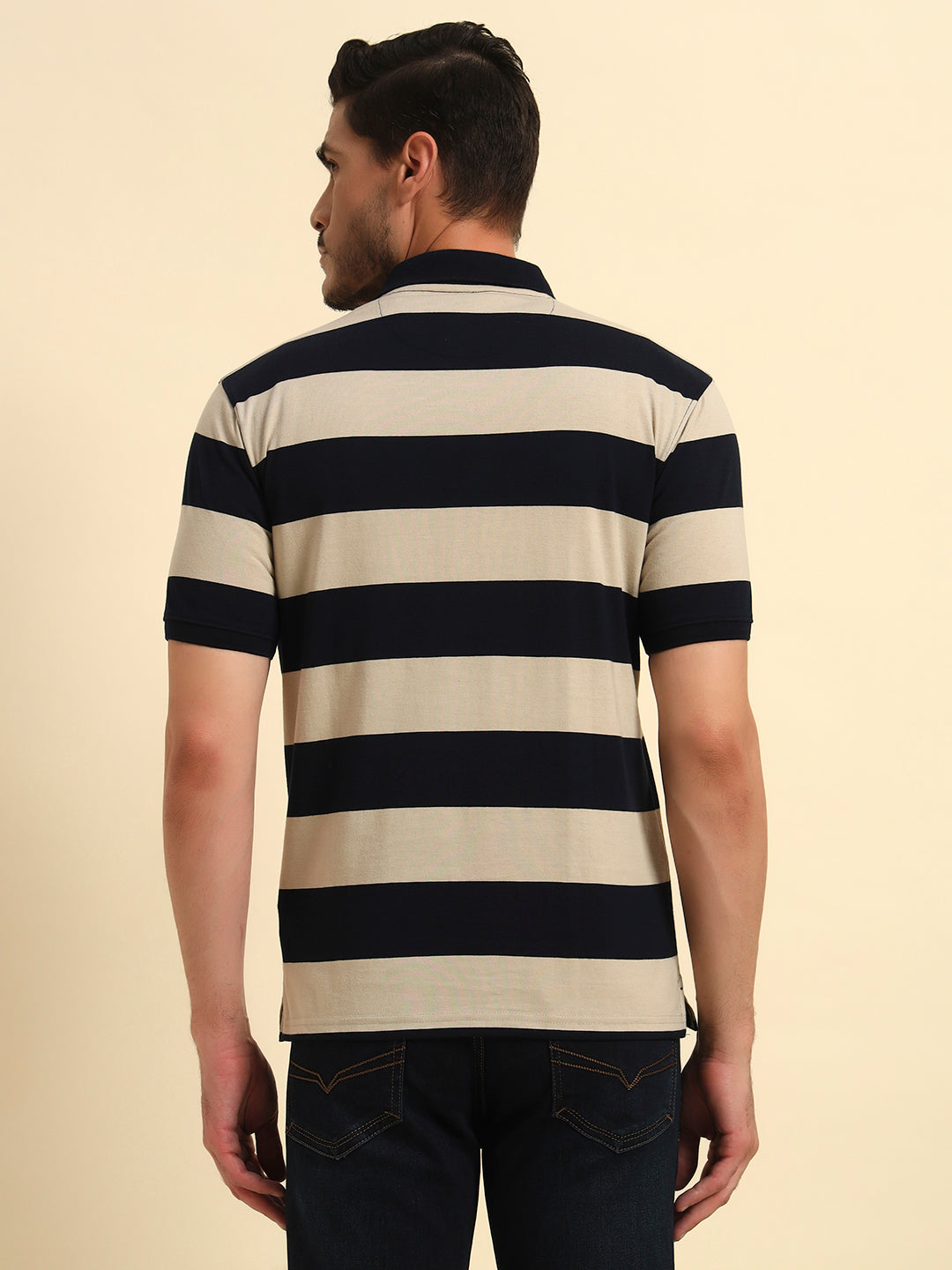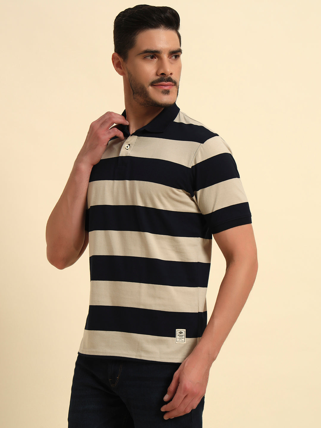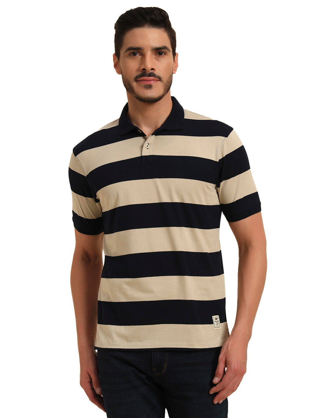 T-Shirt for Men | Breathable & Soft with Color Fastness Regular Fit Polo Neck Poly Cotton Fabric Striped Pattern