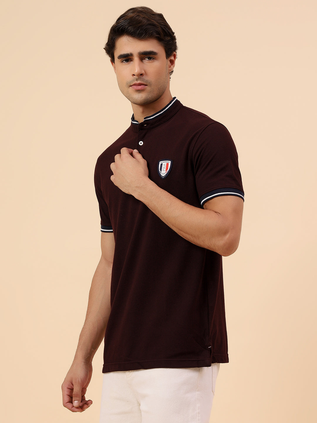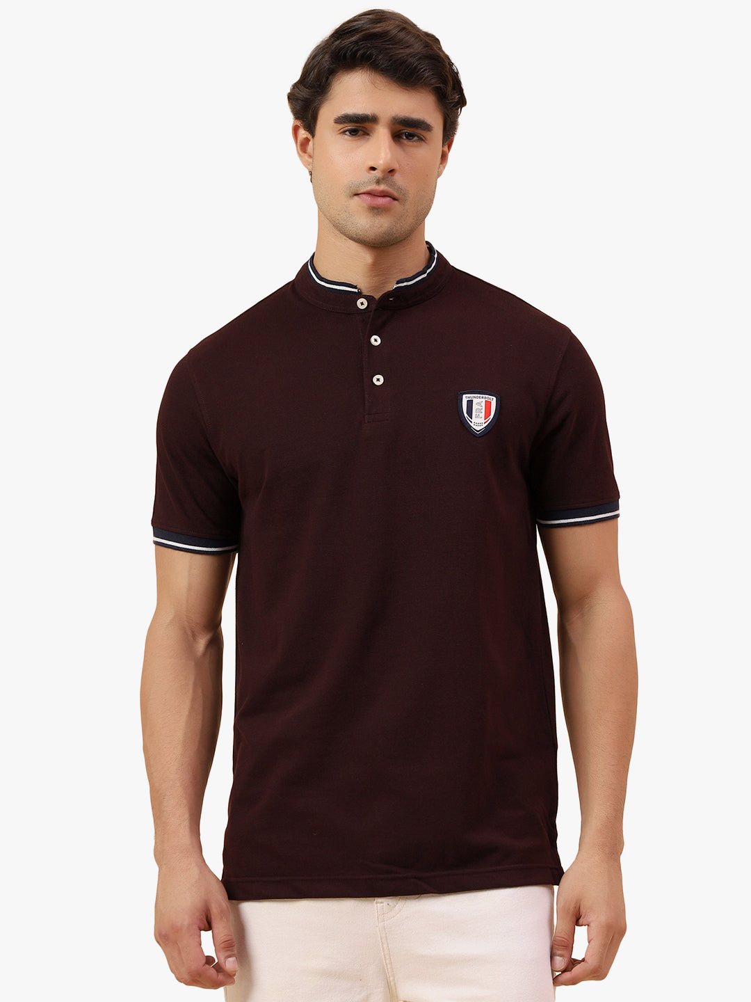 T-Shirt for Men | Breathable & Soft with Color Fastness Regular Fit Mandarin Collar Poly Cotton Fabric Solid Pattern