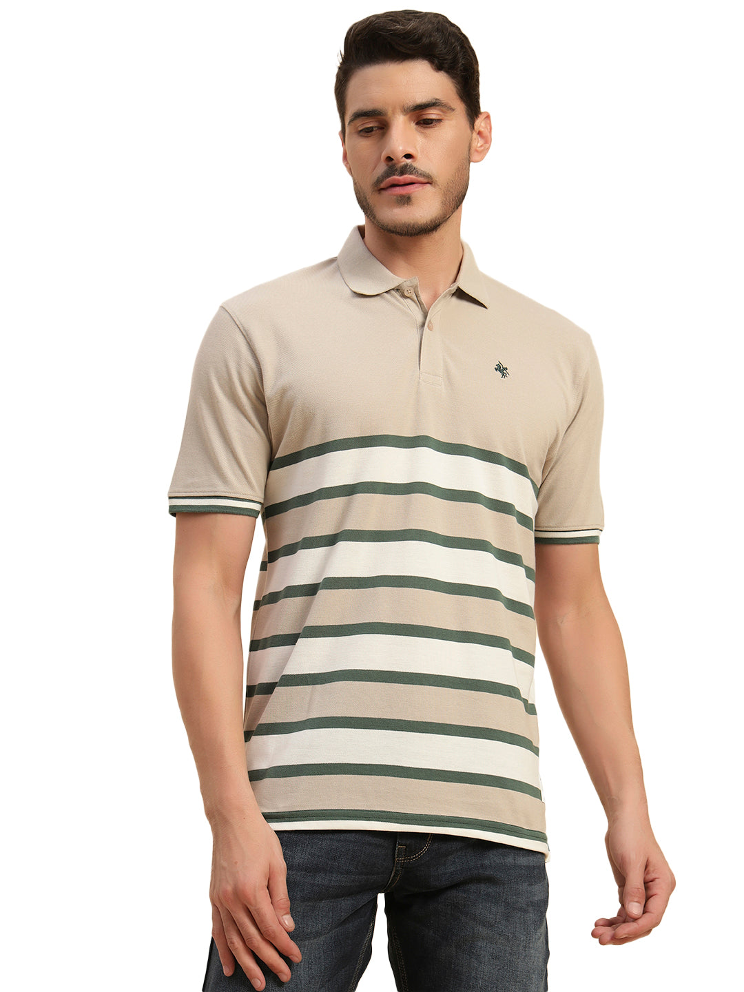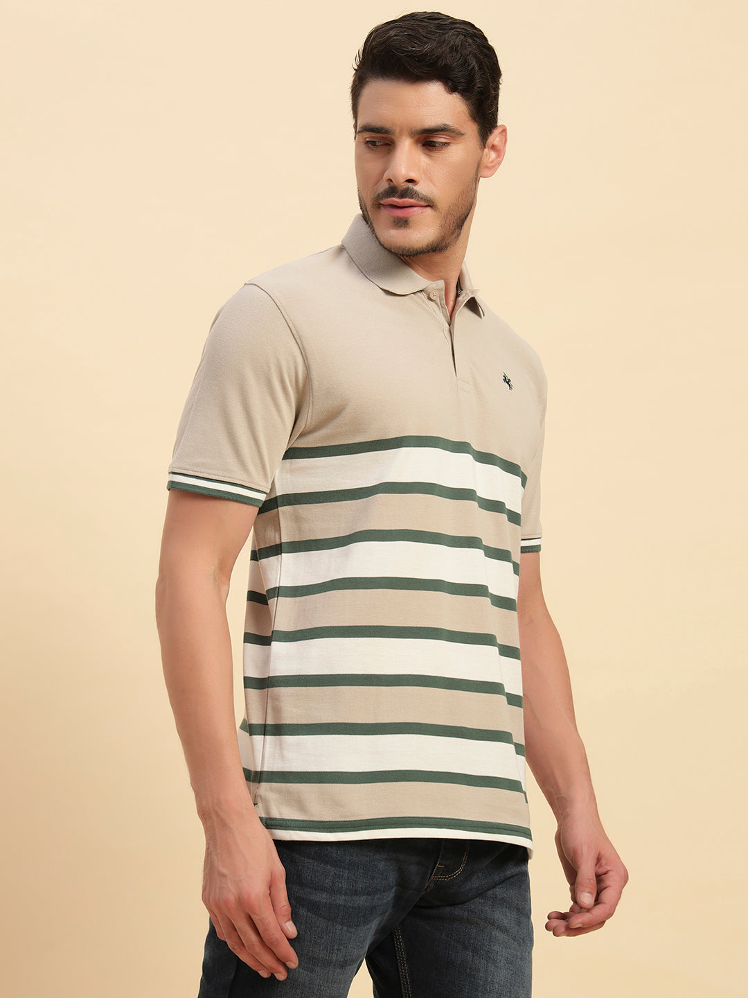 T-Shirt for Men | Breathable & Soft with Color Fastness Regular Fit Polo Neck Poly Cotton Fabric Striped Pattern