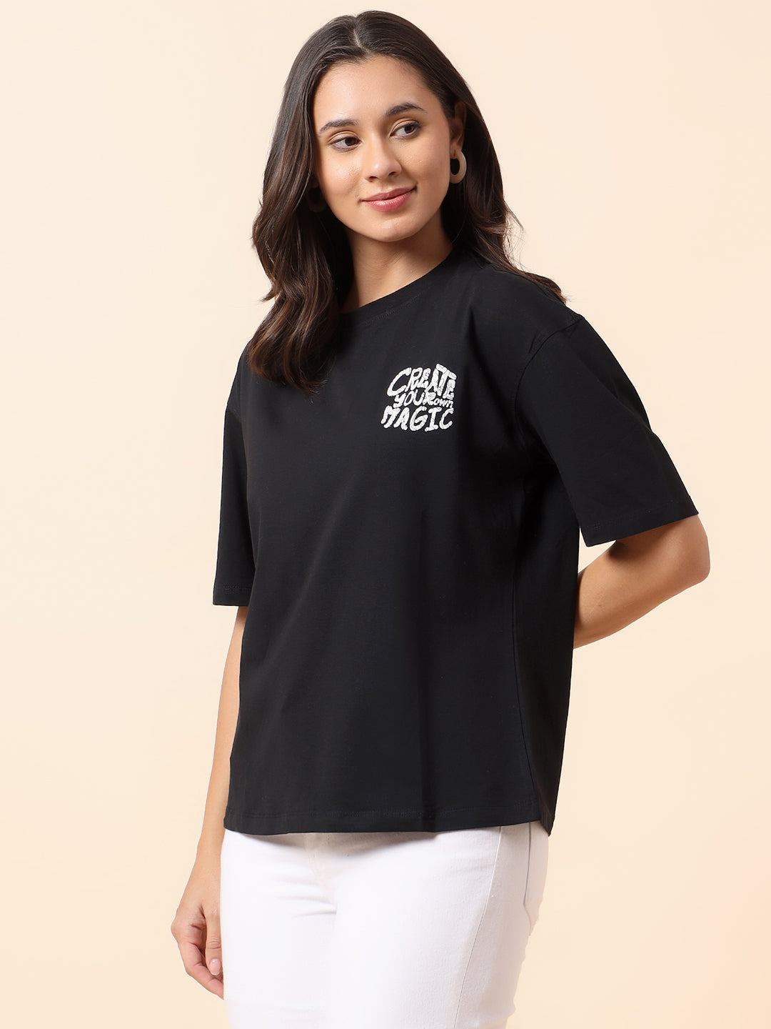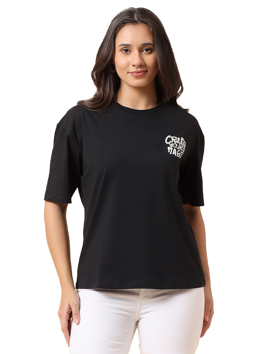 T-Shirt for Women l Breathable & Soft with Color Fastness Regular Fit Round Neck Cotton Blend Fabric Printed Pattern