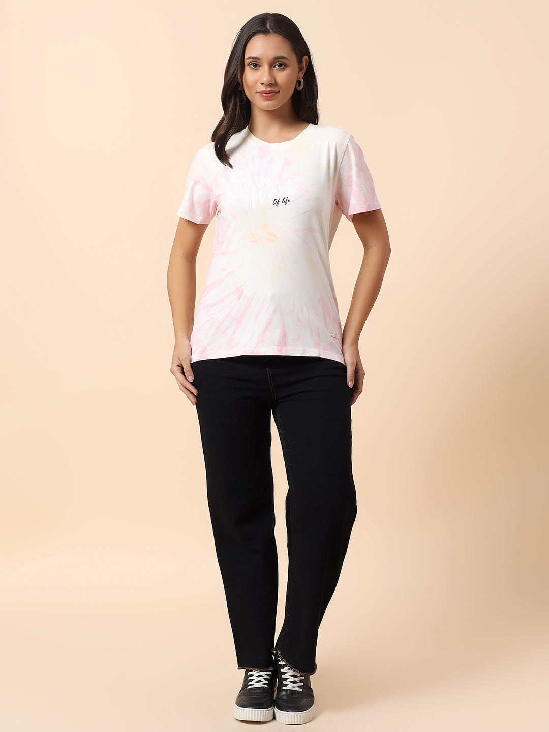 T-Shirt for Women l Breathable & Soft with Color Fastness Regular Fit Round Neck Poly Cotton Fabric Printed Pattern