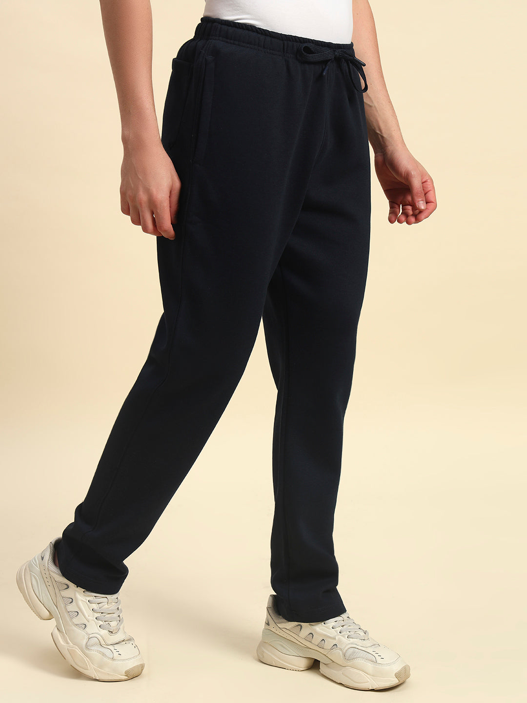 Track Pants for Men | Breathable & Soft with Color Fastness Regular Fit Fleece Fabric Solid Pattern Drawstring Closure
